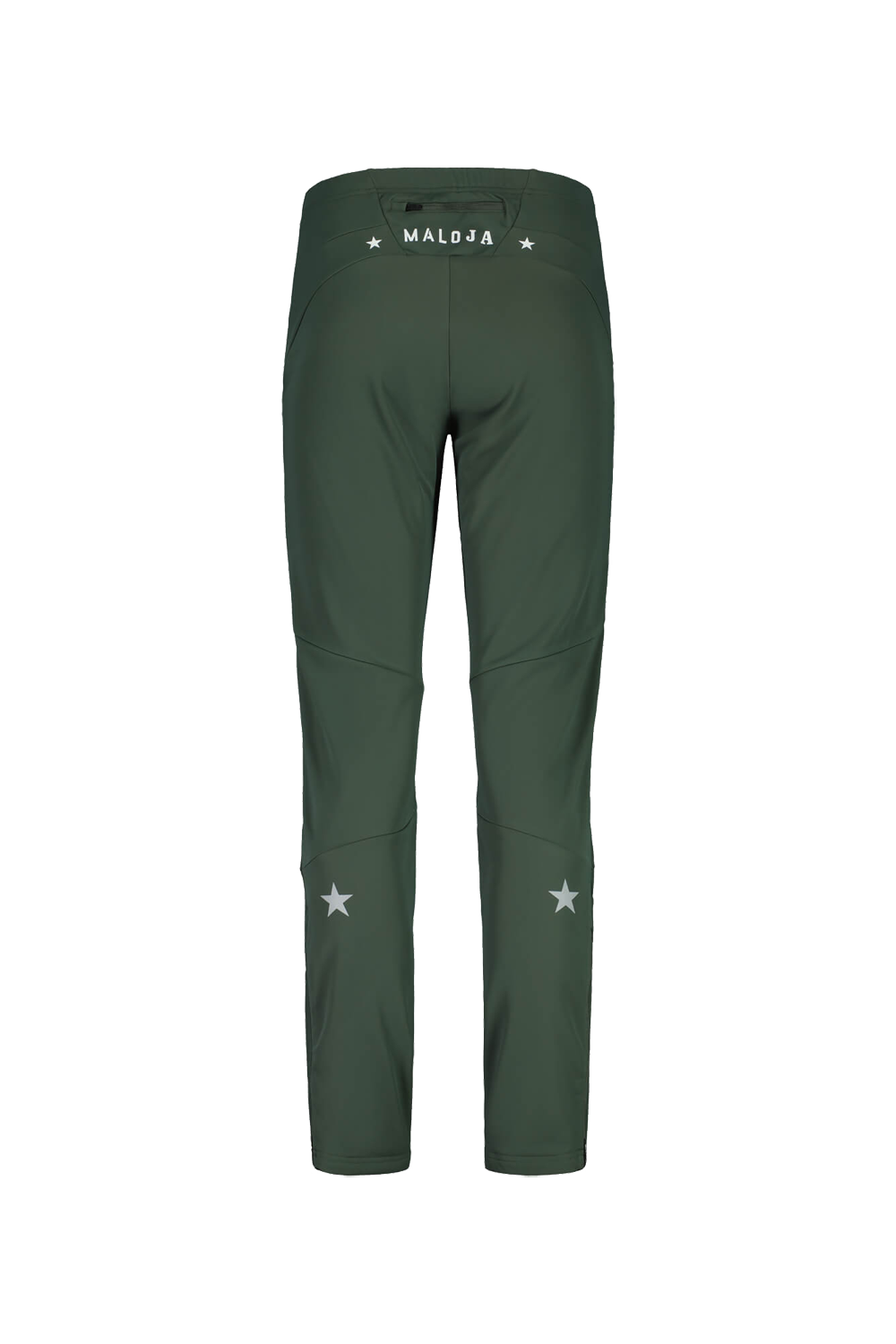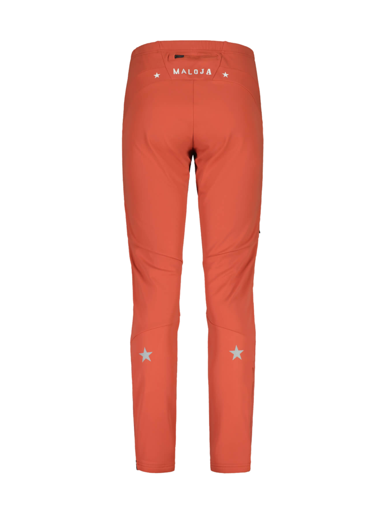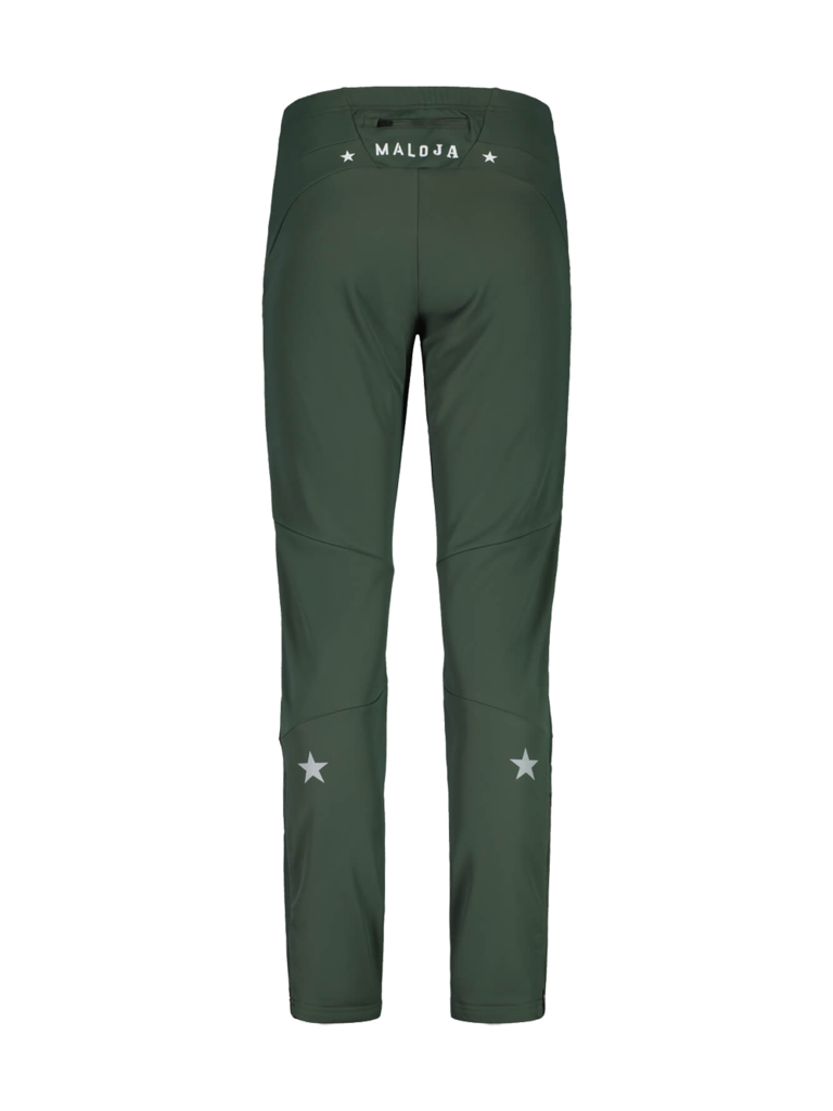 Our most popular pants for nordic and outdoor activities in autumn/winter. Thanks to the Stormshell Warm material on the front, these cross-country ski pants offer effective wind protection and are pleasantly warm, the back made of Thermal Stretch Eco offers plenty of freedom of movement and breathability, for maximum ventilation provide the zipper vents on the outer thighs. Ergonomically shaped knees and elastic waistband with width adjustment ensure high wearing comfort. Round Maloja lettering on the left thigh, Maloja lettering above the bottom and reflective star at the back of the calf. Available in different lengths.