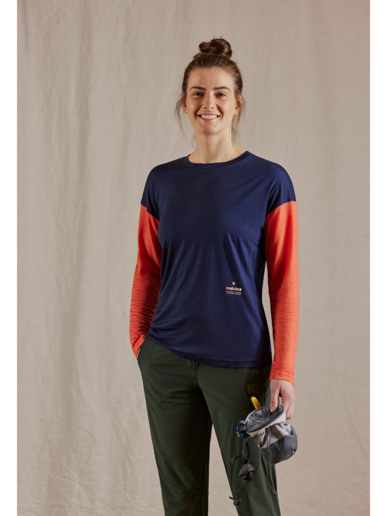 Create an accountThanks to its modern cut with low-set sleeves and longer back, this easy wear longsleeve is equally at home on mountain tours and climbing as it is on the bike or in everyday life. The merino wool has an odor-inhibiting effect and keeps you feeling fresh for a long time, while the fabric is temperature regulating and quick drying.