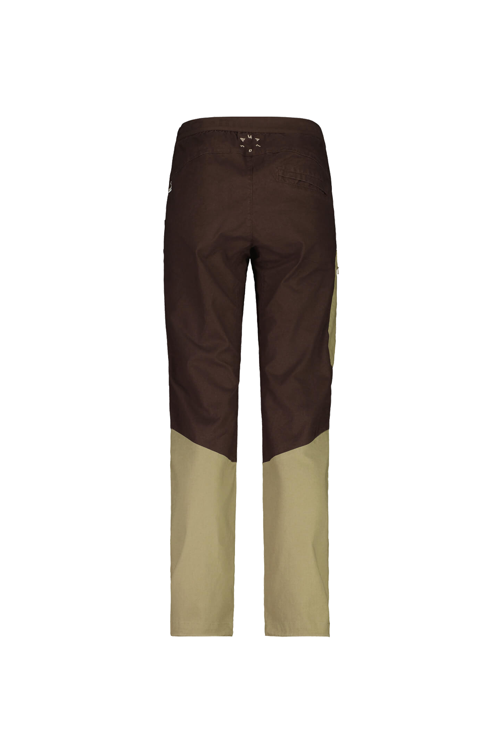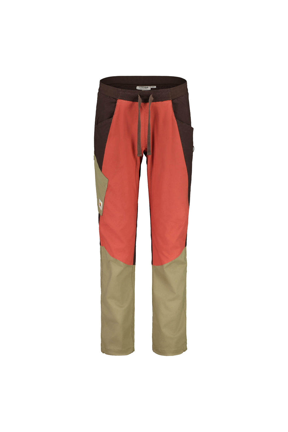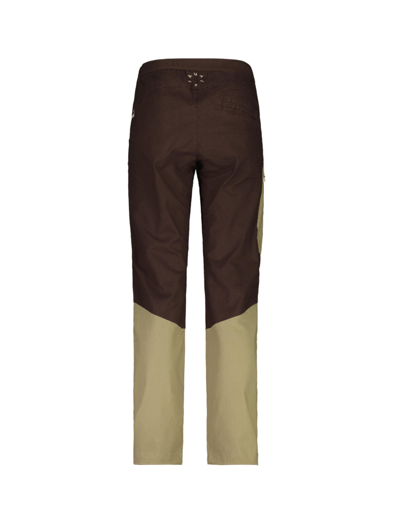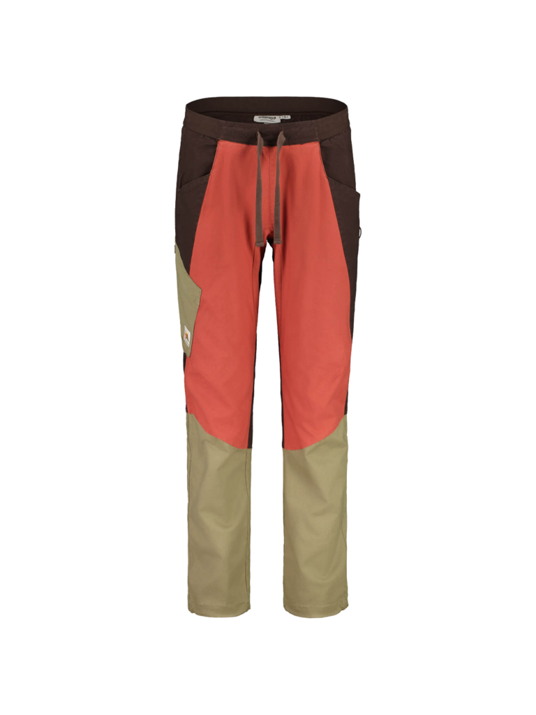 These newly designed pants made of hemp and organic cotton have a loose cut optimally adapted to climbing, the pre-shaped knees and the gusset insert improve freedom of movement and comfort during all outdoor activities. Two slightly deeper set pockets and a patch cargo pocket with Mountain People patch.