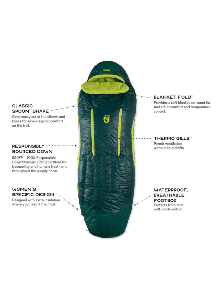 Updated with new contours, Disco continues to reign as the ideal down backpacking bag for side sleepers, offering the plushest comfort possible on the trail. Seventy percent of all people sleep on their side, which is why NEMO designed the iconic Spoon™ Shape bag to fine-tune the balance between comfort and packability.