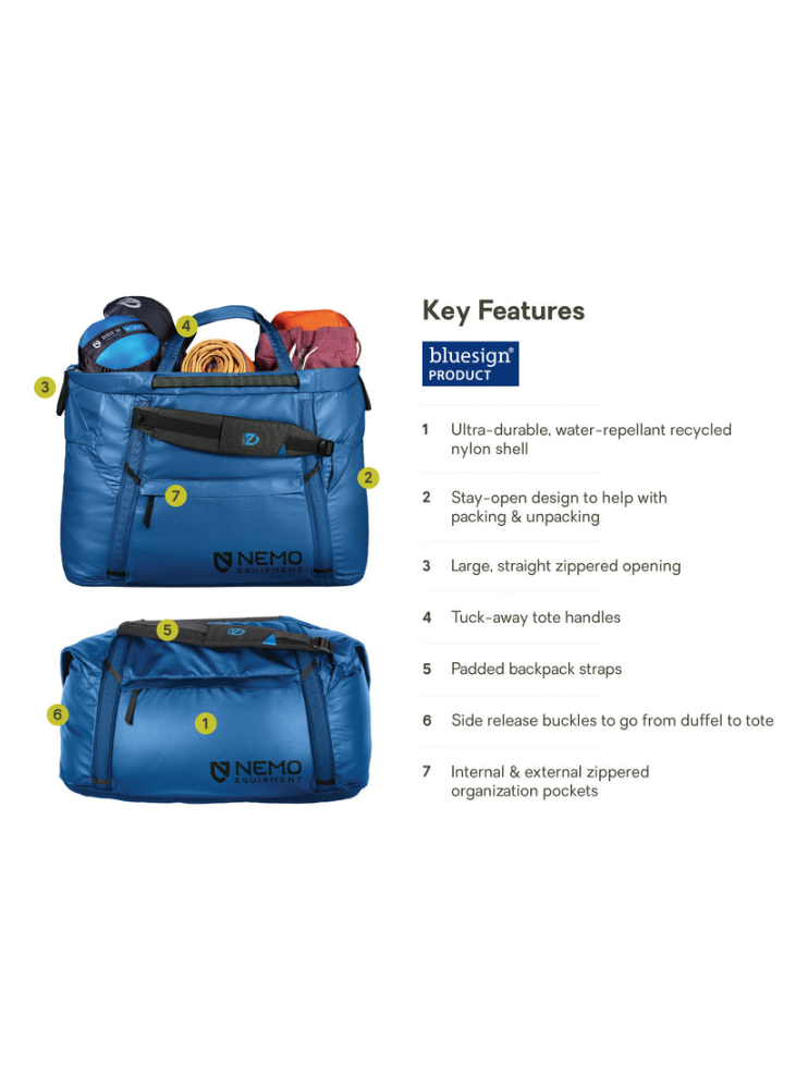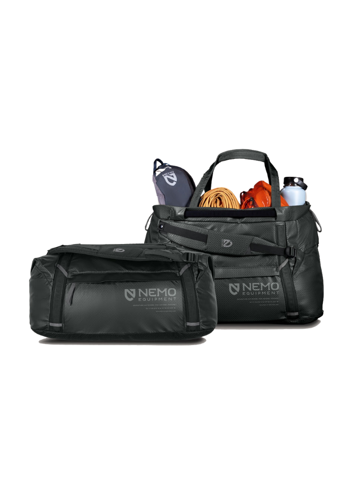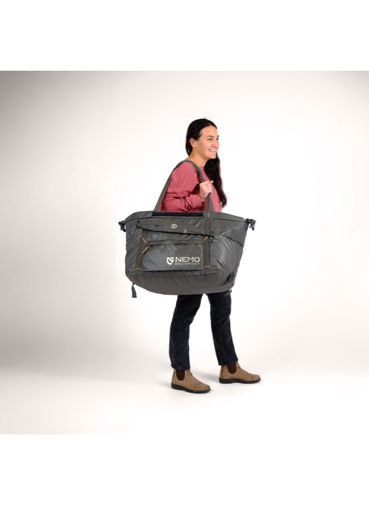 Made responsibly from bluesign®-approved 420D recycled nylon, Double Haul is water- and stain-resistant, and built to endure years of hard use. Side-release buckles transform it from duffel to tote in seconds, while stiffened trusses keep the bag upright for easy loading. Inside and out, zippered mesh pockets organize essentials, and each bag includes a matching carrying case that doubles as a packing cube.