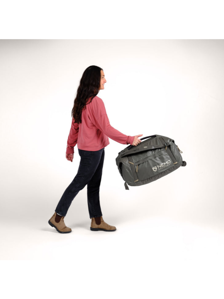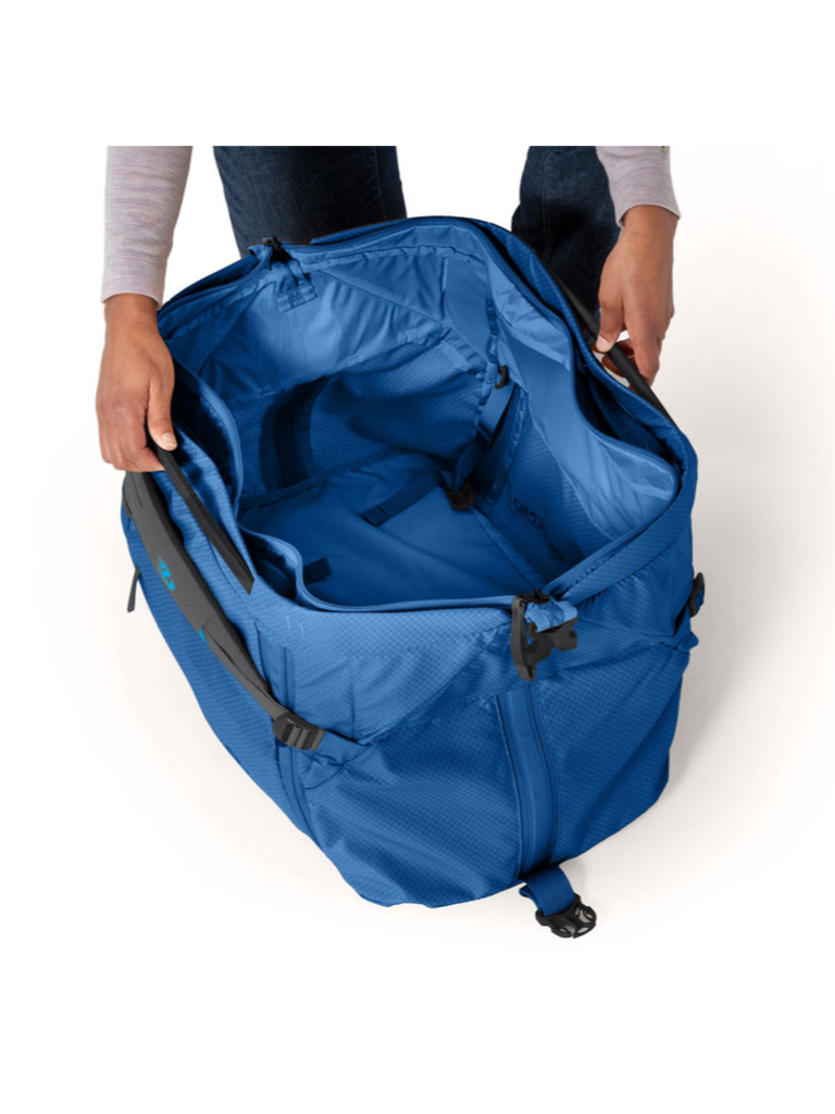 The structured, wide-opening design stays open as you pack, then folds neatly into a streamlined duffel for travel days. When you need more capacity or quick access, tucked-away tote handles deploy instantly for grab-and-go hauling. Self-contained, low-profile backpack straps make longer carries effortless.