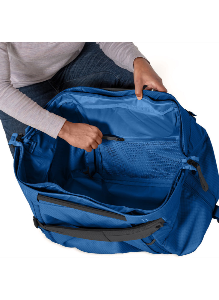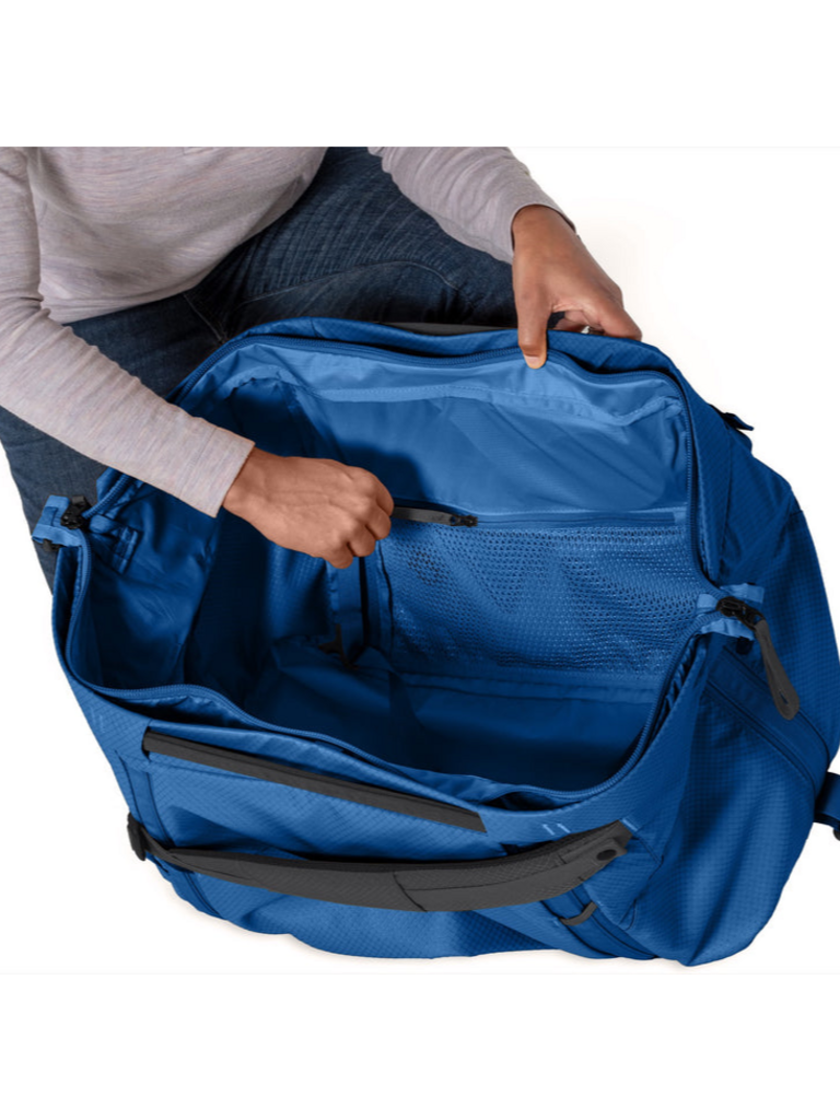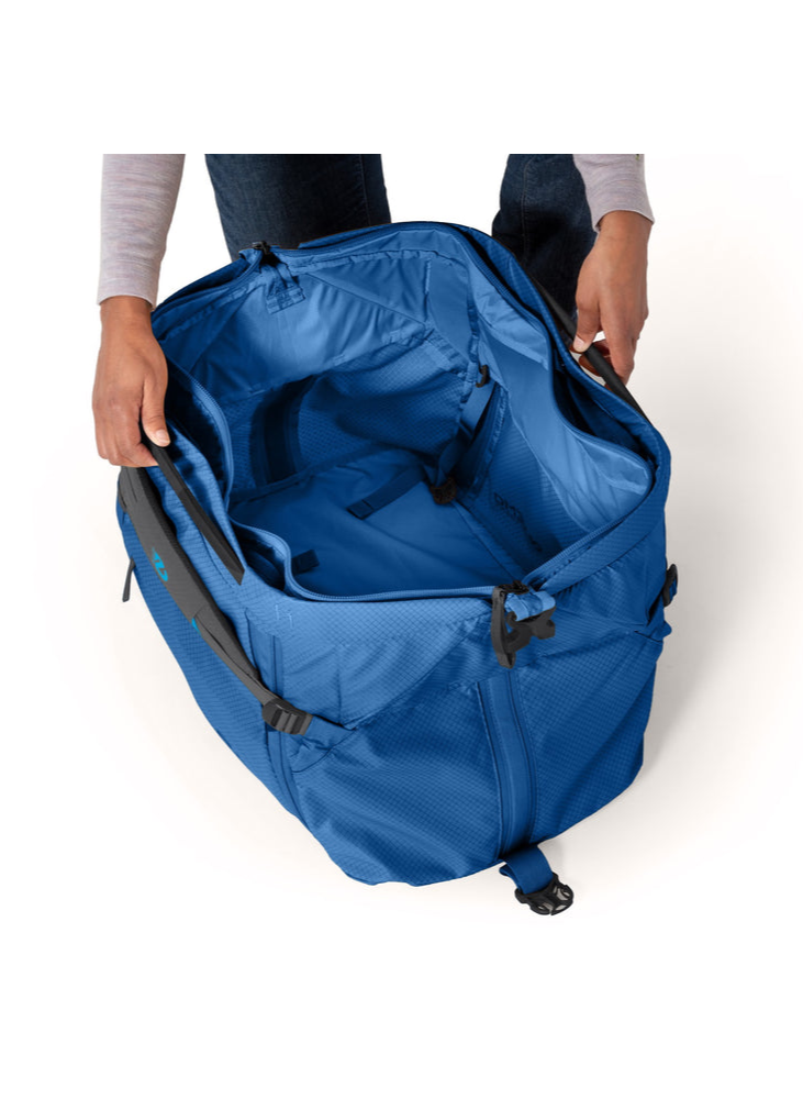 The structured, wide-opening design stays open as you pack, then folds neatly into a streamlined duffel for travel days. When you need more capacity or quick access, tucked-away tote handles deploy instantly for grab-and-go hauling. Self-contained, low-profile backpack straps make longer carries effortless.