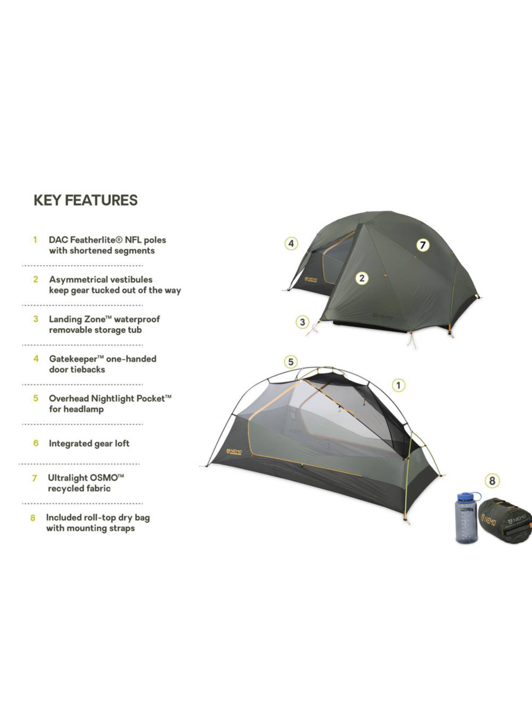 Backed by NEMO’s Lifetime Warranty, this tent soars above the competition and keeps your journey smooth.
