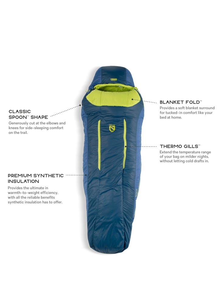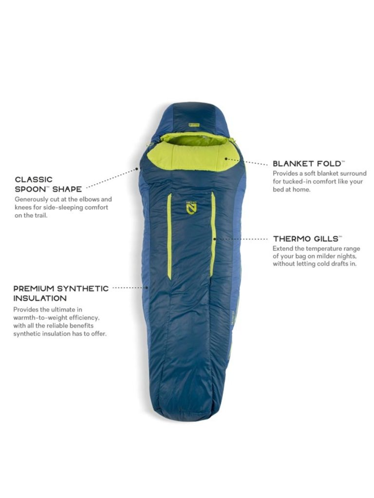 - Opposite-sided zippers on Forte™ Men's and Women's models increase versatility by allowing them to be zipped together into a double sleeping bag.