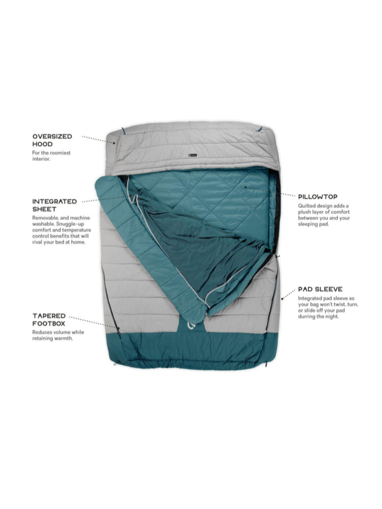 The integrated pad sleeve keeps your sleeping pad securely in place no matter how much you twist or turn at night. And when you pack it up, you can keep the sleeping pad in place and roll them up together for ultimate convenience. Tapered geometry at the head and foot reduce excess volume inside so your bag stay cozier, even while remaining roomy.