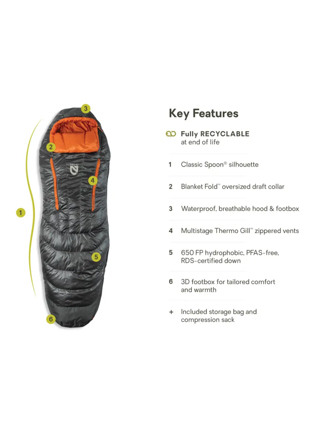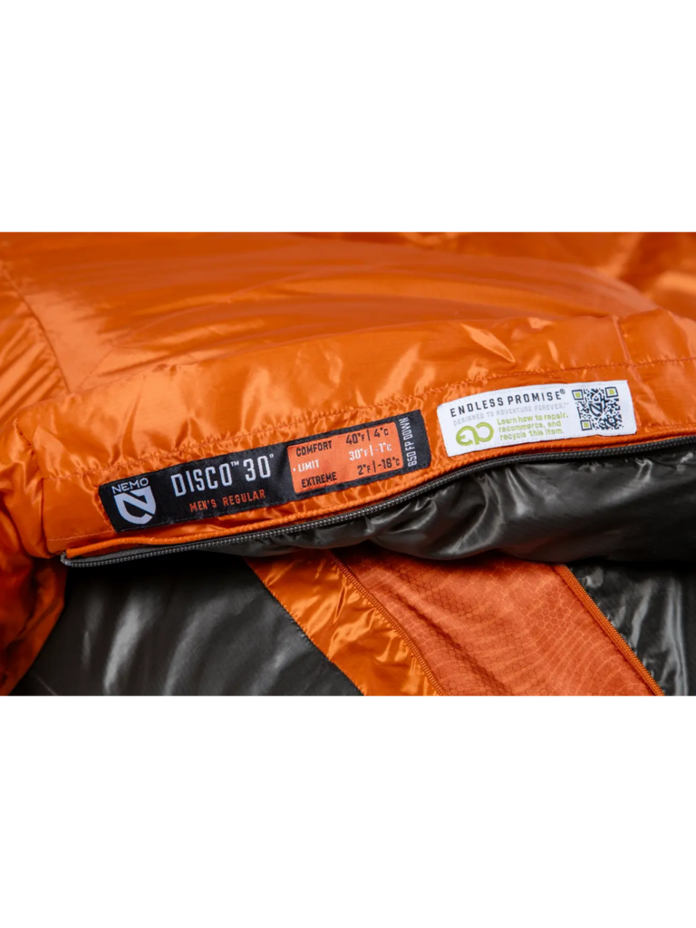 Along with this suite of top features, Disco now boasts the purpose-driven Endless Promise® designation, meaning it was designed specifically to stay out of the landfill and on the trail, forever. With a shell manufactured fully from PET, this sleeping bag is 100% recyclable at the end of its life — just send it back to NEMO, and we’ll handle the rest.