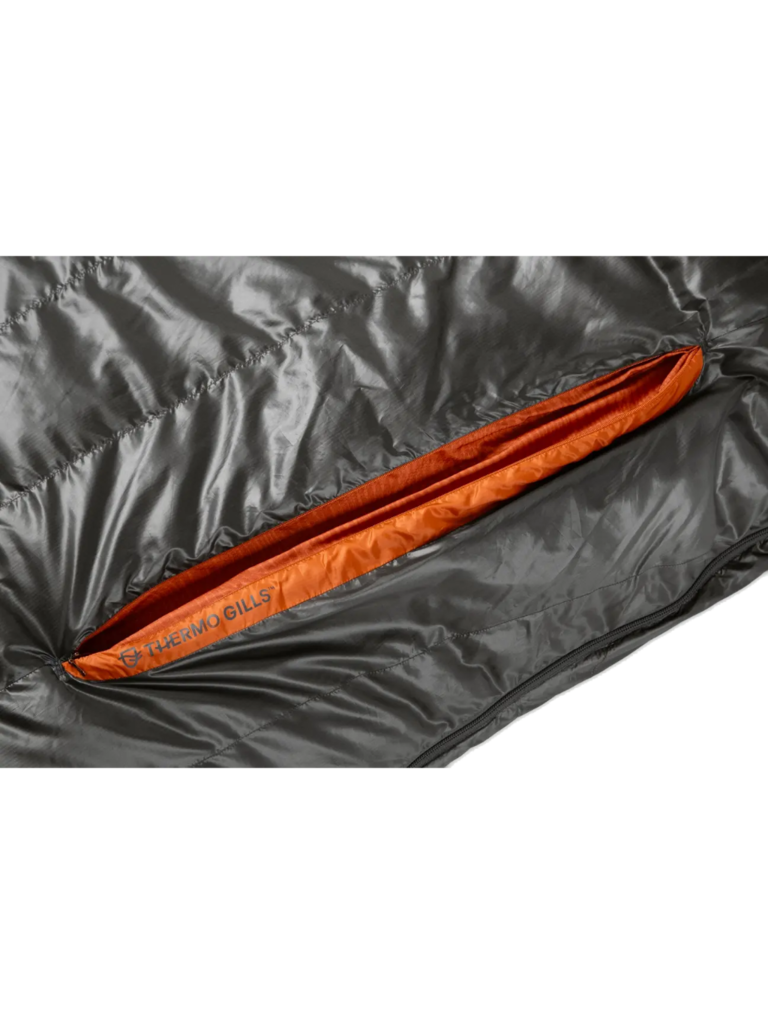 Disco includes a set of next-generation Thermo Gill™ vents on the chest to offer fine-tuned temperature control and a better outdoor sleeping experience. Each Gill features an interior and an exterior zipper with a draft-blocking intermediate layer, allowing several different configurations for dialing in the bag’s temperature without direct exposure to cold air. Our Blanket Fold™ draft collar at the neckline features a redesigned size and shape to further optimize sleep temperature. Tucked in, the Blanket Fold defiantly blocks any chill while mimicking the comfort of your bed at home. Pushed out, it helps dump excess heat instantly. Finally, Disco’s revamped design has baffles insulated with water-resistant, RDS-certified down, placed vertically along the torso for comfort and aligned horizontally below the waist to prevent down migration.