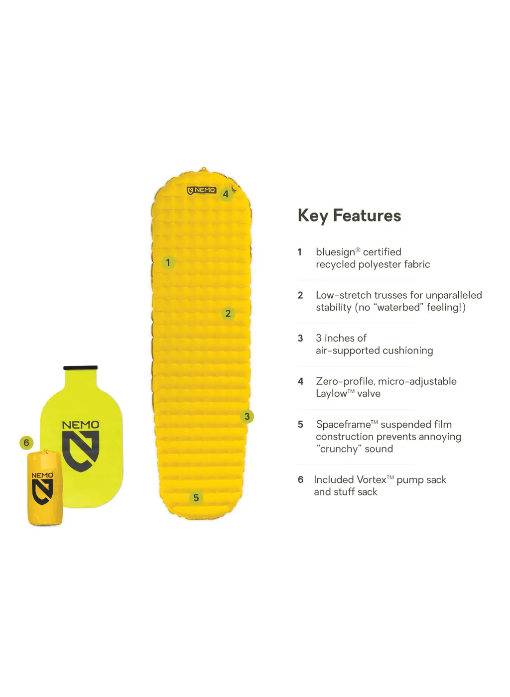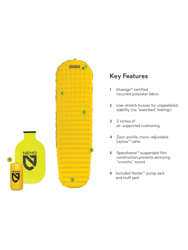 - Included Vortex™ pump sack provides easy and fast inflation, saves breath at elevation, and minimizes moisture entering the pad.