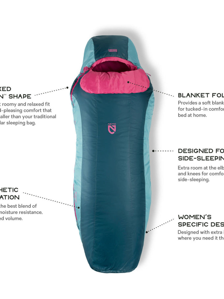 Create an accountSeventy percent of people sleep on their side, yet mummy bags are not designed to accommodate this. The new Tempo™ blends roomy comfort with NEMO’s popular Spoon™ shape for a relaxed, crowd-pleasing fit that packs smaller than a rectangular sleeping bag. With a generous cut at the elbows and knees, side sleepers can shift positions comfortably throughout the night.