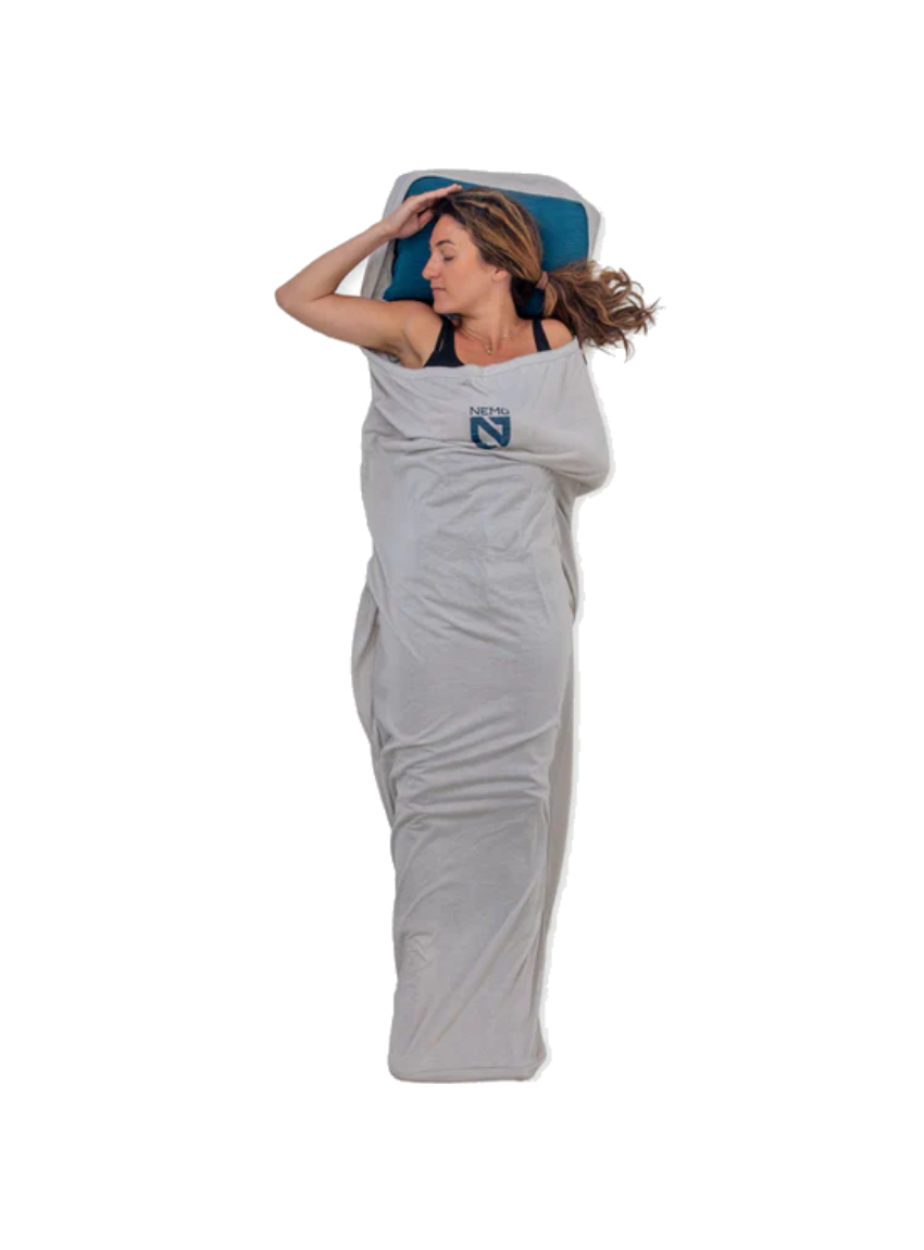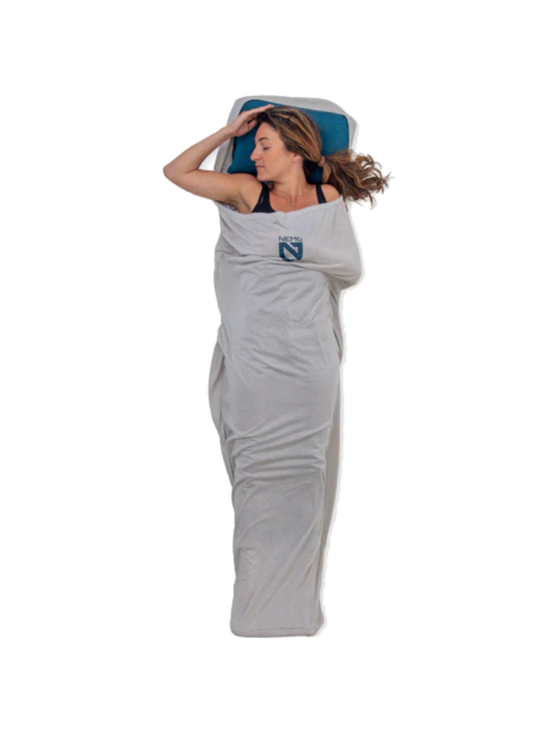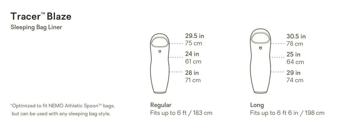 In addition to providing a physical layer that shields your bag from oils and sweat, Tracer is treated with Polygiene® Odor Control Technology, an antimicrobial finish that inhibits odor-causing bacteria. By allowing users to extend the time between laundering, this bluesign® approved odor-free finish protects a sleeping bag’s performance and longevity while also reducing micro-plastic shedding into the water stream. Though Tracer is optimized for NEMO Ultralight Spoon bags (Riff™), it can be used as a light yet warm layer inside any sleeping bag, from rectangle to mummy style.