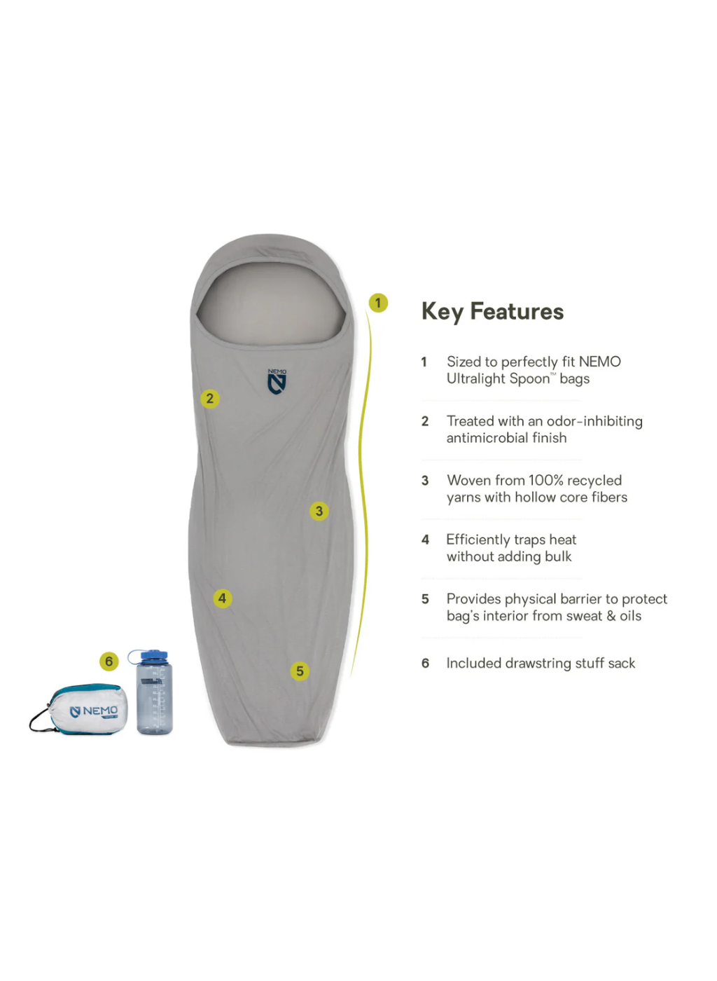 - Optimized for Ultralight Spoon® sleeping bags but can be layered inside any bag.