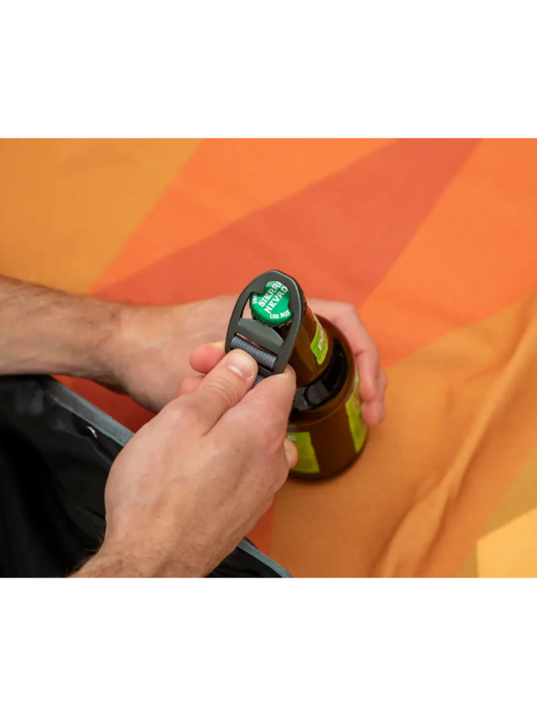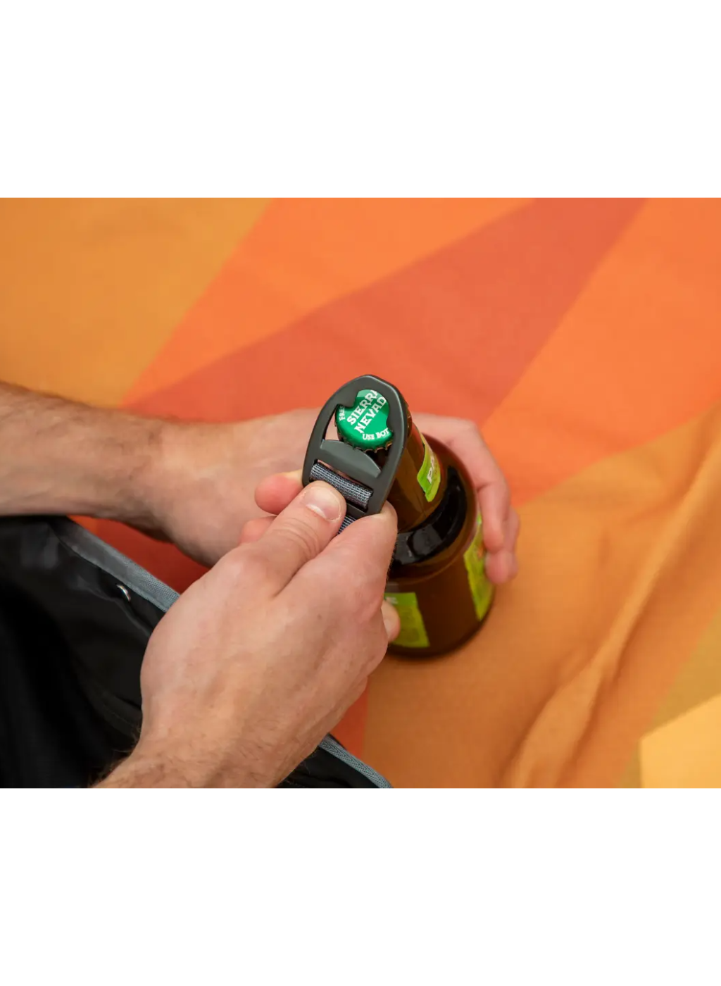 - Packs up into a secure, tidy blanket roll with an aluminum closure that doubles as a bottle-opener and a convenient handle for easy carry.