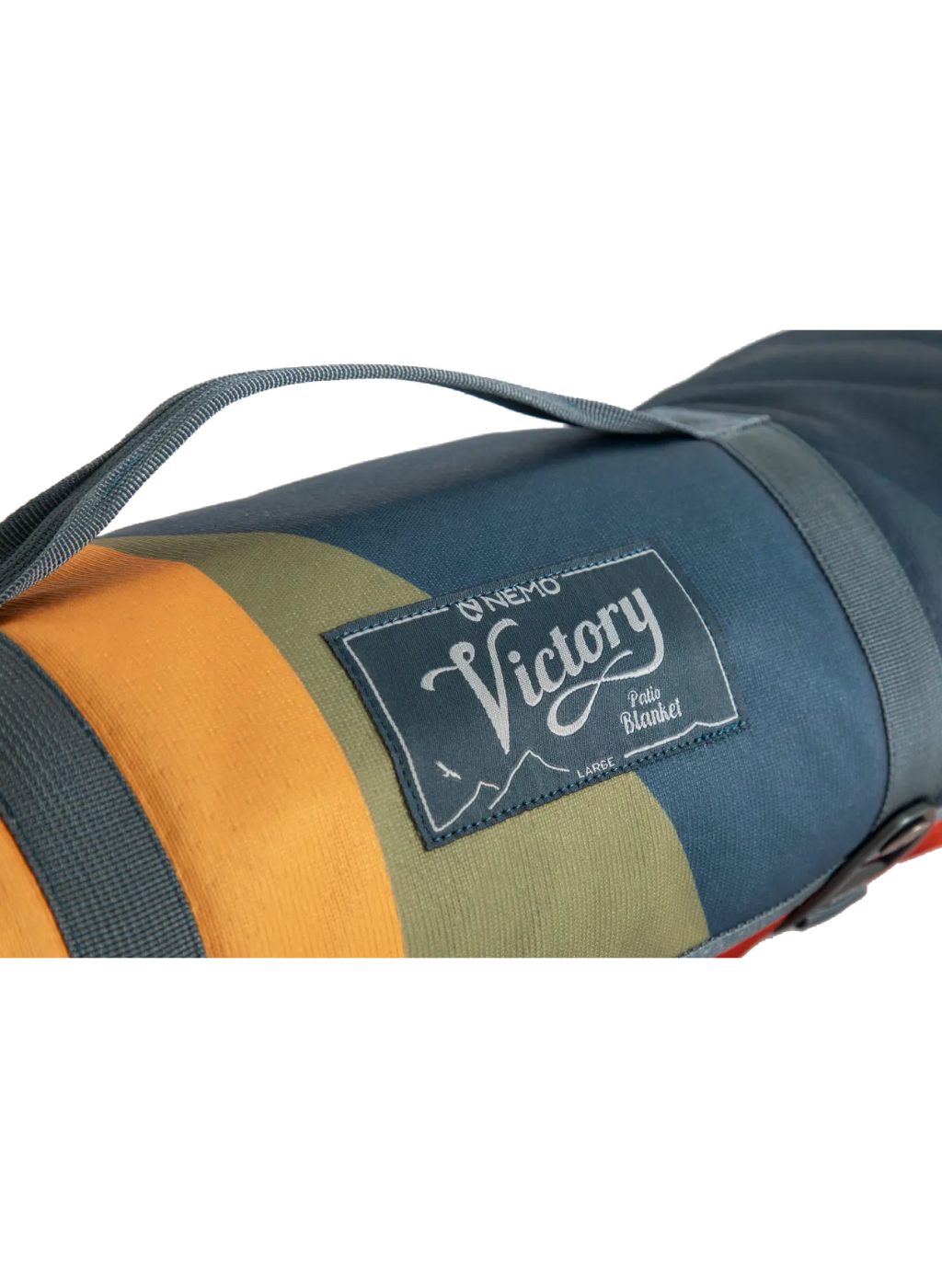 Create an accountThe snag-free, 100% recycled PFC-free polyester top fabric is mated to a thin layer of cushioning and a fully waterproof bottom for all-terrain versatility and easy cleaning. Keep a Victory Patio Blanket in your car for the unexpected adventure. It rolls into a compact volume, held by a beautiful aluminum closure that doubles as a bottle-opener, stowing away nicely.