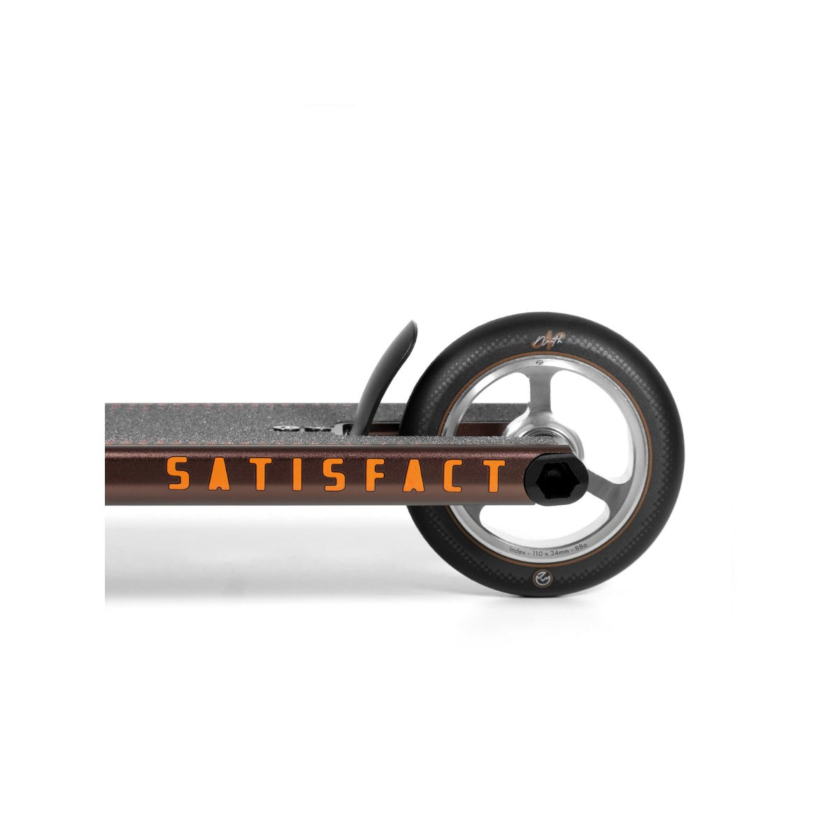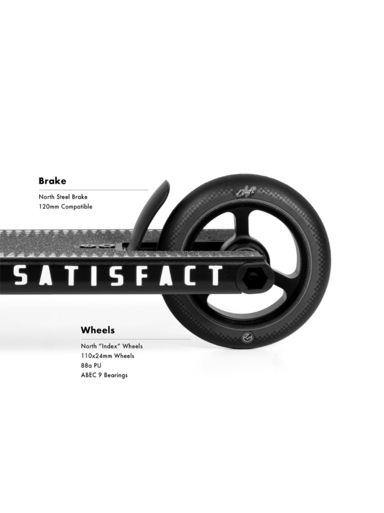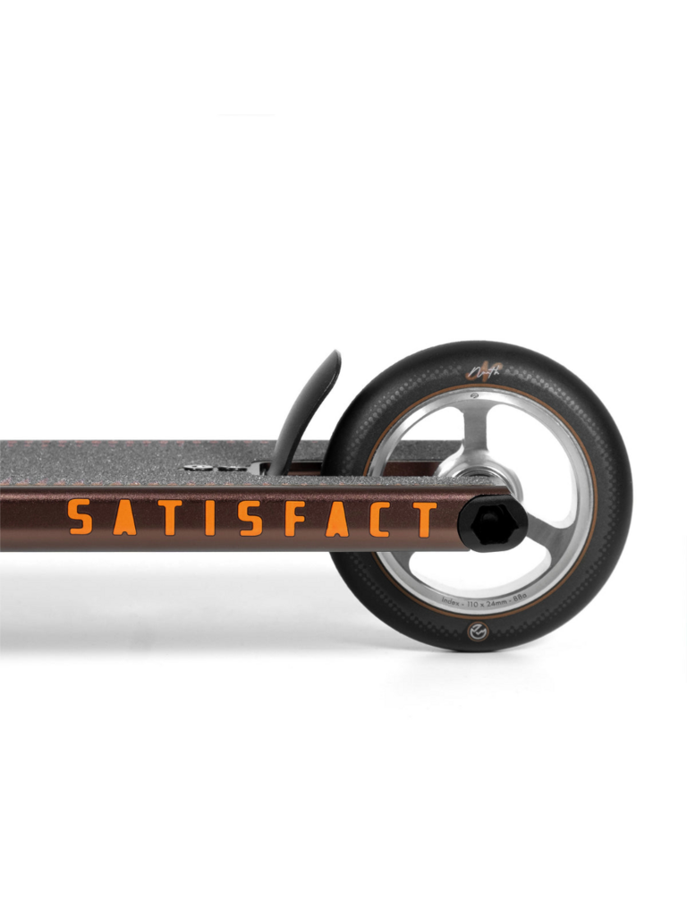 Create an accountComing in at 5.2” wide x 20.5“ long, this complete utilizes a smaller version of our popular Unity deck. The Satisfact also comes with our new aluminum t bars, Index tri spoke wheels and Nova 24mm fork, which were all designed specifically for this complete with weight savings in mind. The combination of these lightweight parts and a larger boxed end deck allow riders to transition between park and street riding effortlessly.