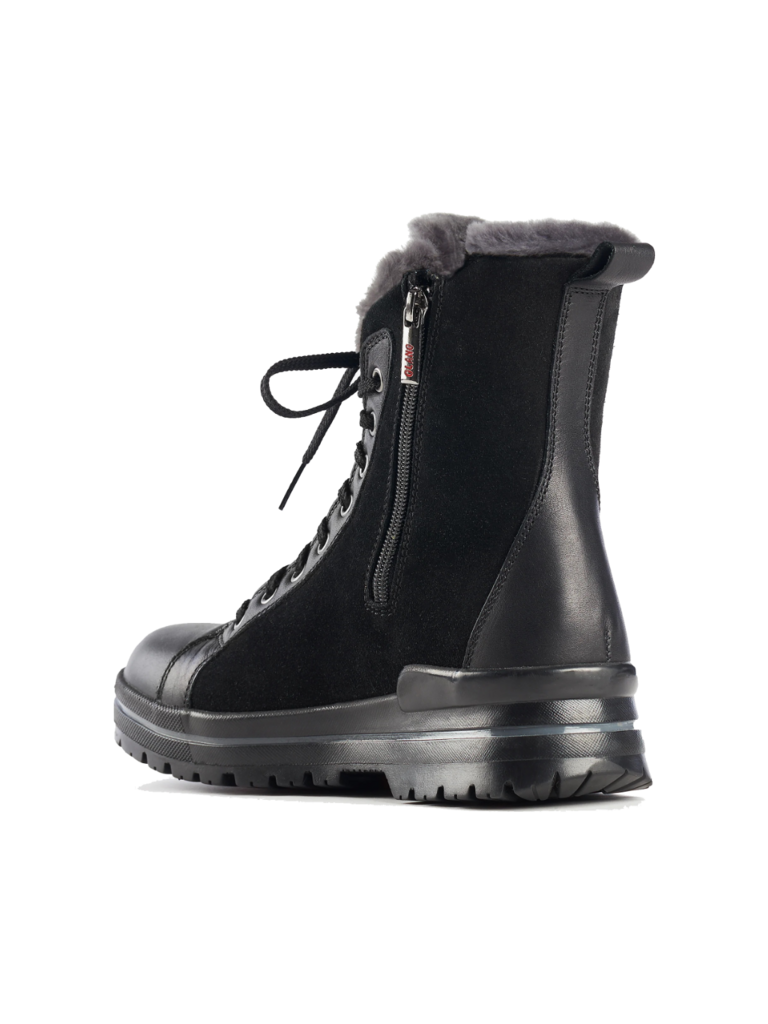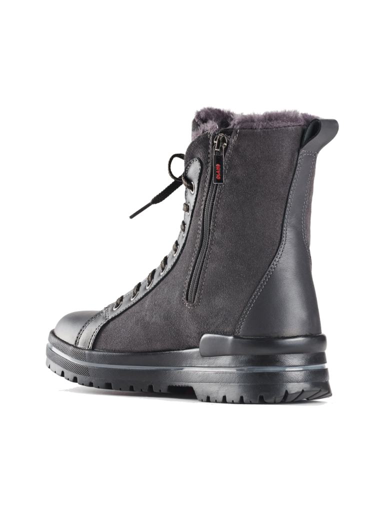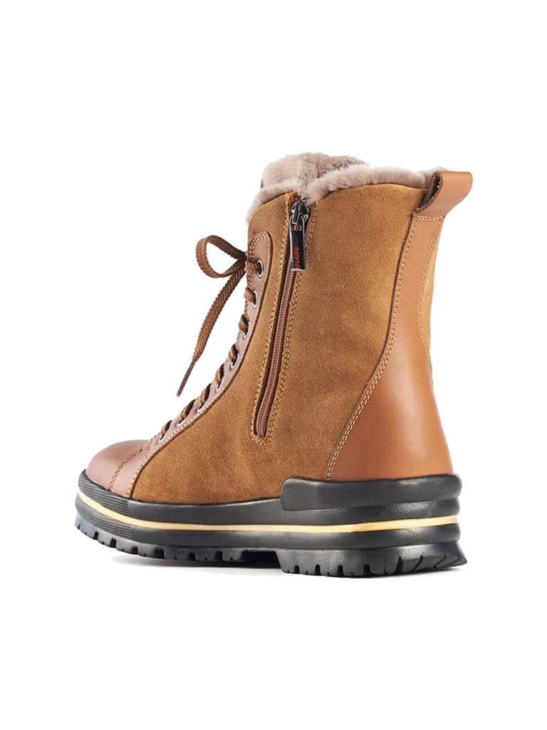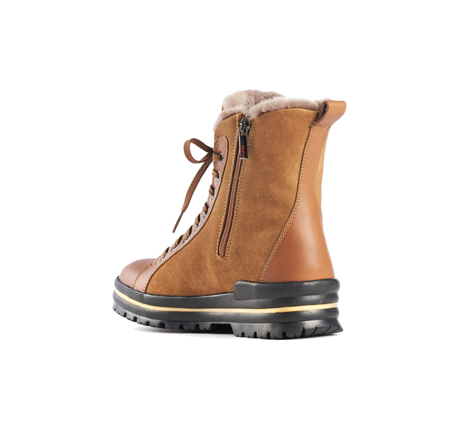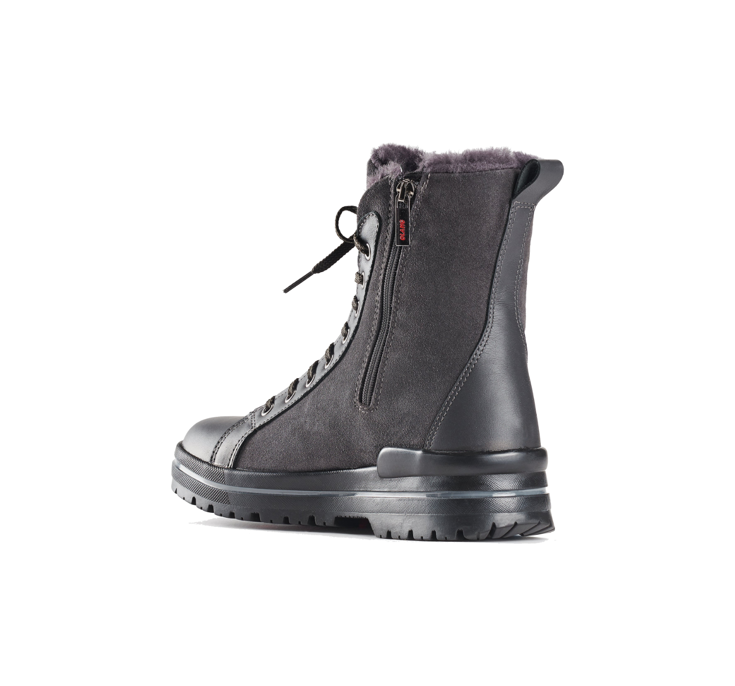 - Laces with sturdy metal eyelets and hooks and robust zipper located on the inside of the boot