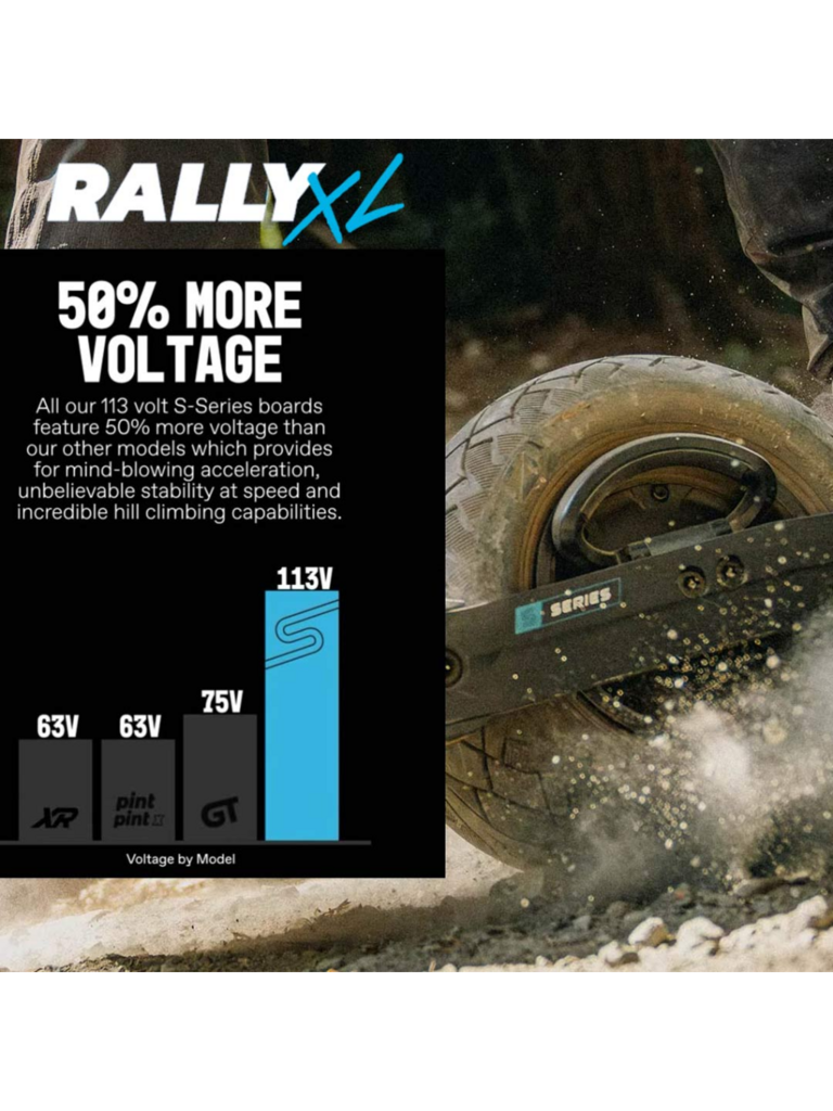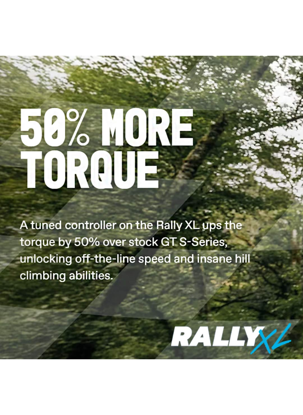 113V High-Performance Powertrain – 50% More Voltage Rally XL is powered by an advanced 113-volt system.