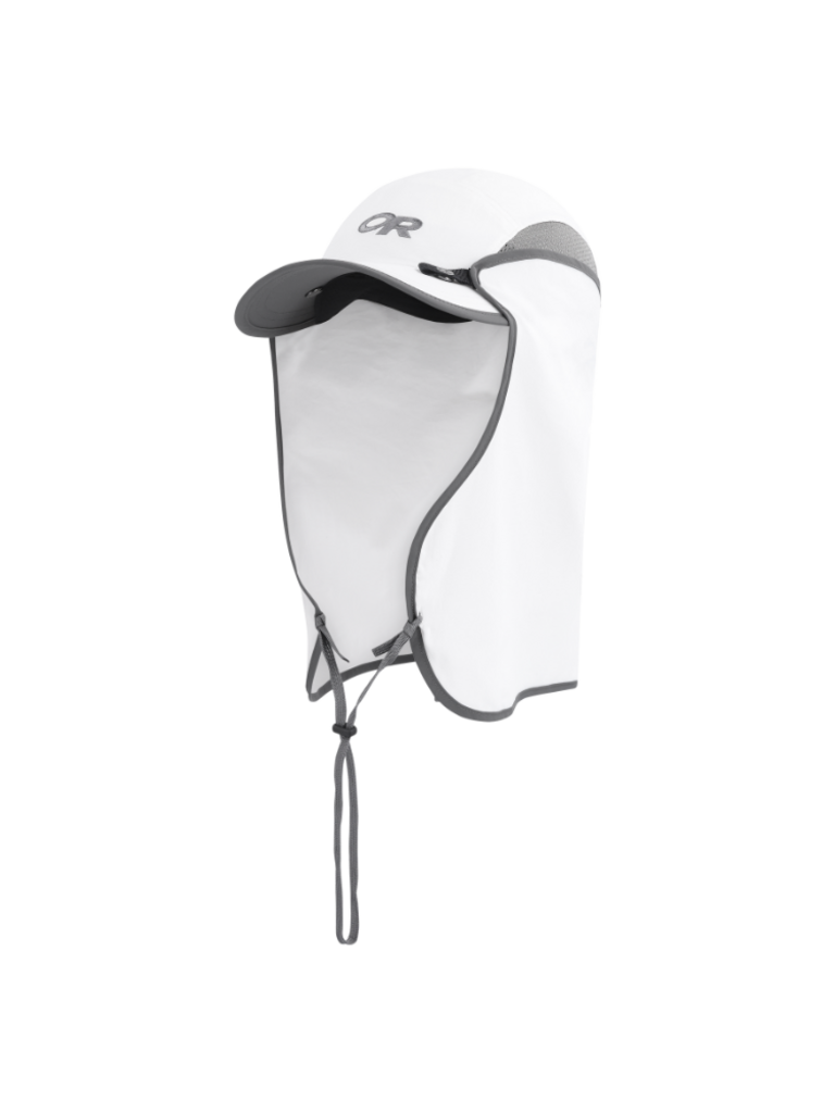 The 2.75" wide brim protects from the sun, while the external breathable mesh panels and internal UPF 40 fabric deliver a cool and comfortable feel while protecting from the sun. The convertible design features a removable cape to protect the back of the neck, while the dark material under the brim reduces glare. The chin cord keeps the cap in place on windy days spent on trail, and the TransAction™ headband wicks moisture away from head and face.