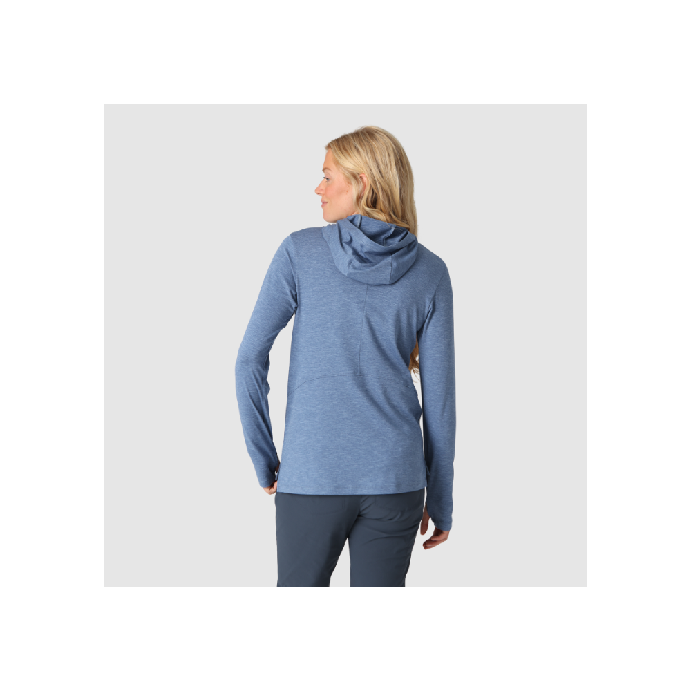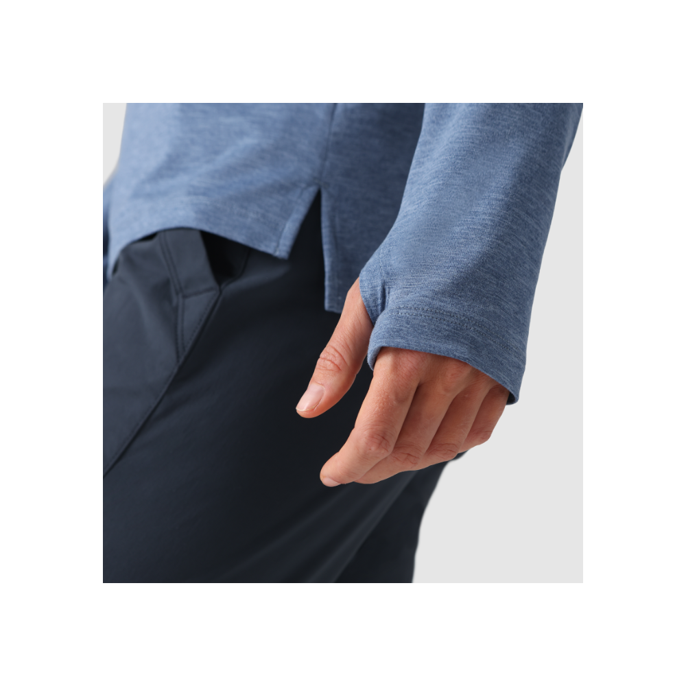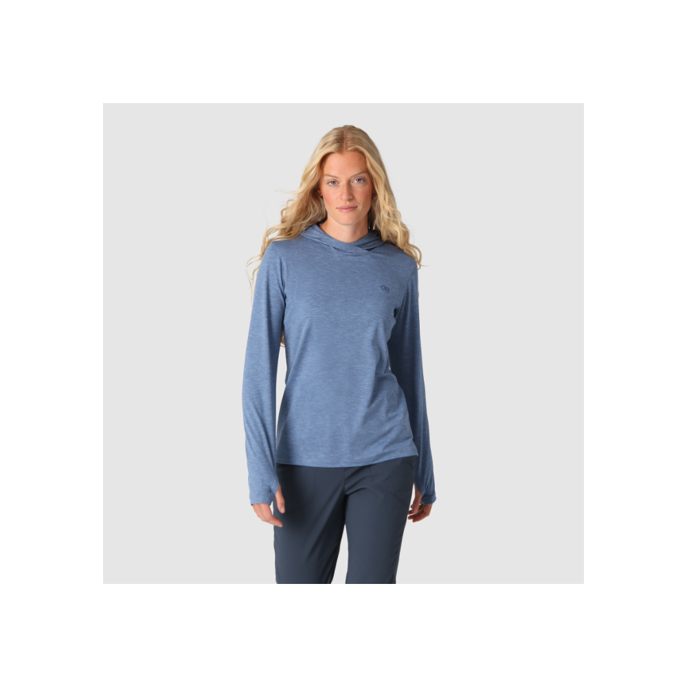 This hoodie is built with an ultra-comfortable, breathable, and quick-drying polyester blend treated with our proprietary ActiveIce™ technology. ActiveIce™ reacts to your body's rising temperature by cooling down your core, keeping you in the sweet spot longer while pushing the tempo or working hard. The chafe-free design, built-in stretch, and UPF 50+ are welcome essentials for long days spent under the sun, while thumb holes at the ends of the sleeves deliver sun protection that stays in place while reaching for the next hold or setting the pace on the trail.