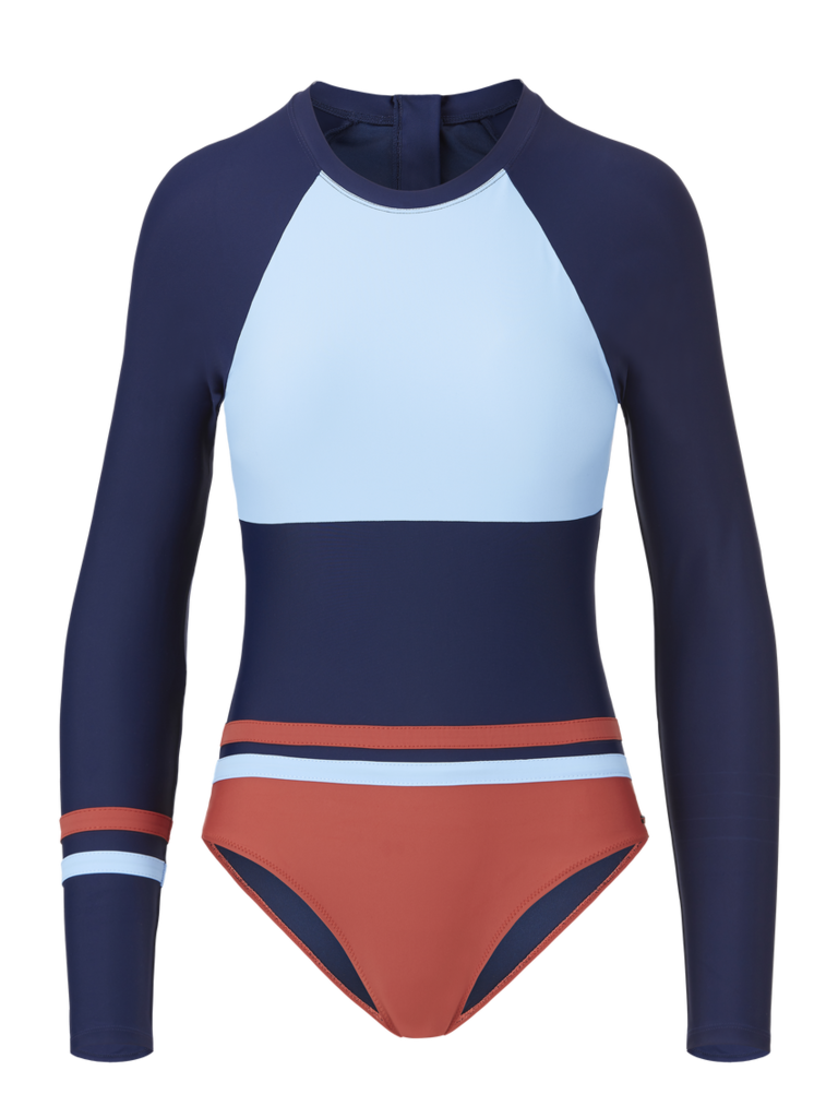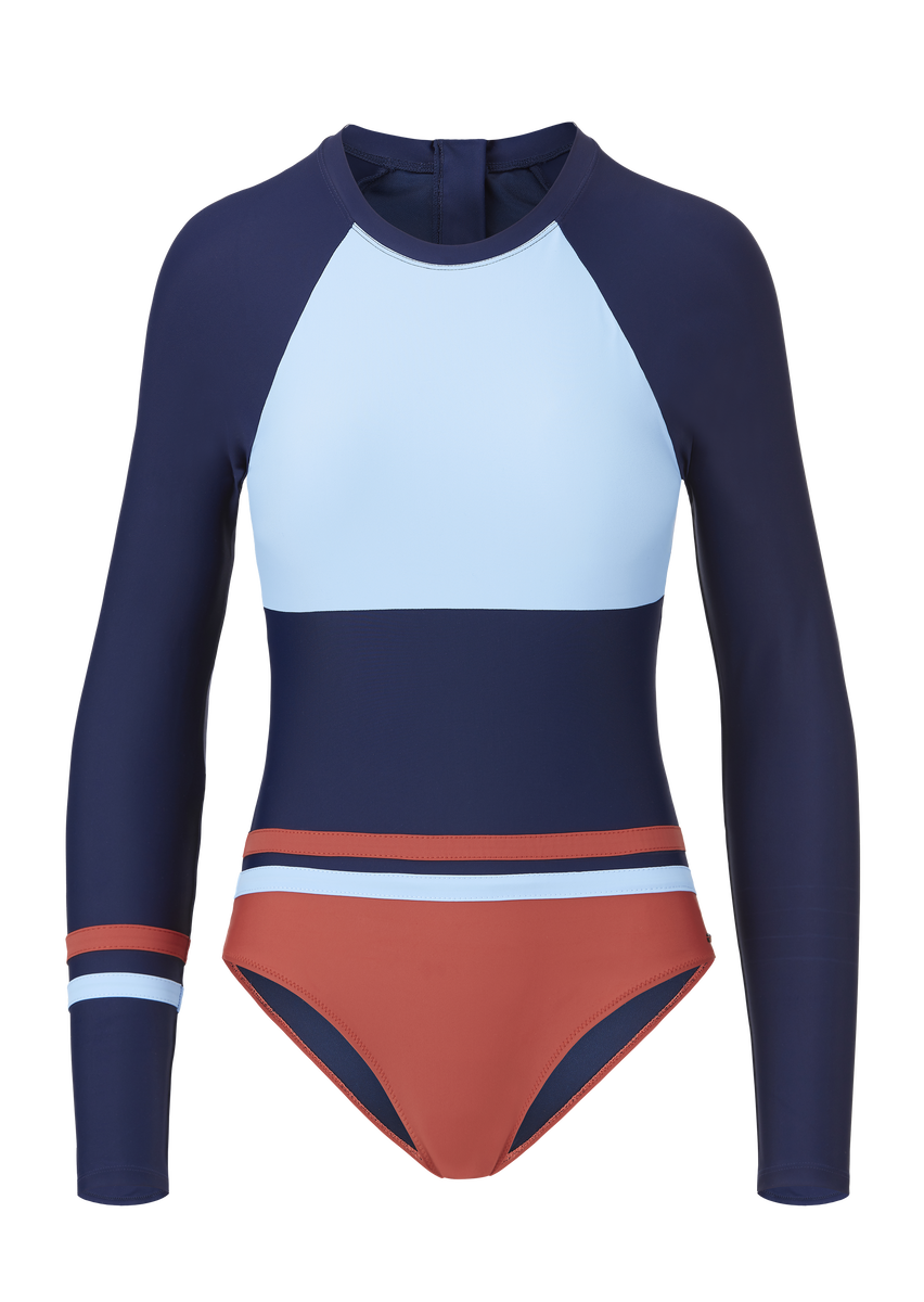 The Dyane one-piece swimsuit belongs to our full range of technical swimwear. We made this swimsuit with sustainable MIPAN® regen™ recycled nylon fabric, which offers excellent stretch, a soft feel, durability, resistance to chlorine and sunscreen damage, and UPF50 protection. It also features a body jersey lining and Dry Feel antimicrobial finish to ensure greater comfort and performance. This long-sleeve swimsuit is ideal for enjoying every surf session to the fullest. You will like the anti-chafe seams, its stretchy, soft, and breathable material for unbelievable freedom of movement when paddling. The Dyane offers such incredible style and comfort in the water that you will simply love this swimsuit.