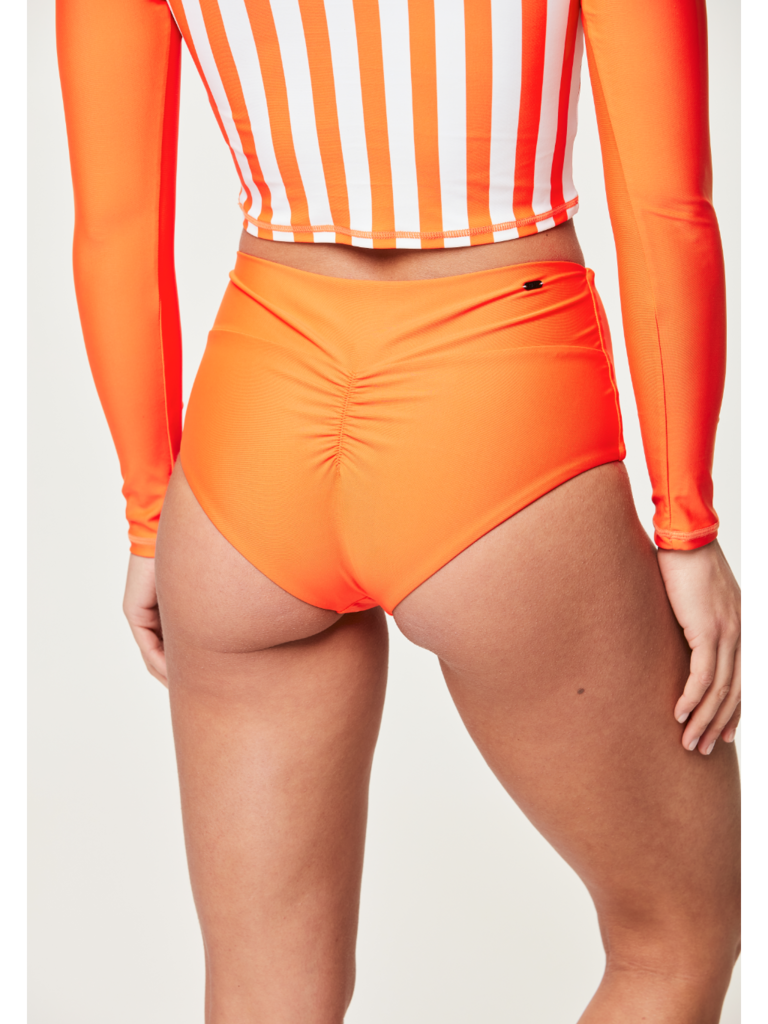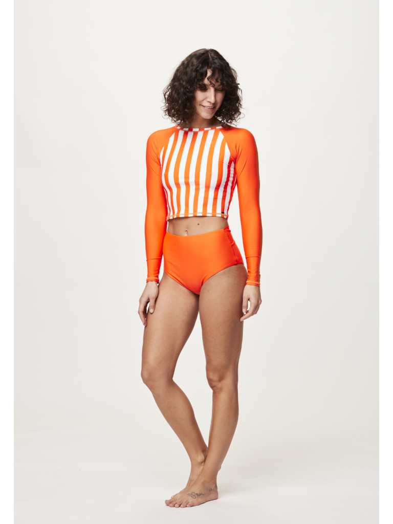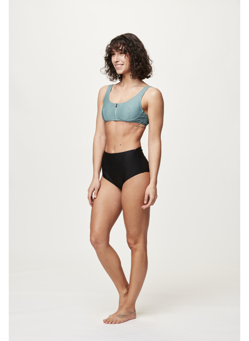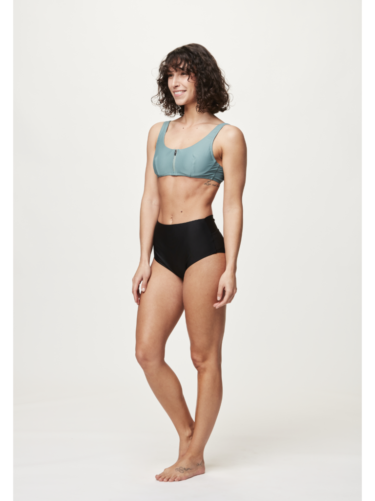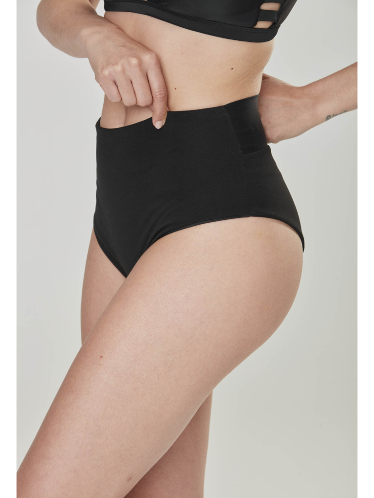 These high-waist bottoms are perfect for a retro style yet feminine look. We made them with sustainable MIPAN® regen™ recycled nylon fabric, which offers excellent stretch, a soft feel, durability, resistance to chlorine and sunscreen damage, and UPF50 protection. Its clean lines and classic shape makes it a piece of swimwear that you just can't live without!