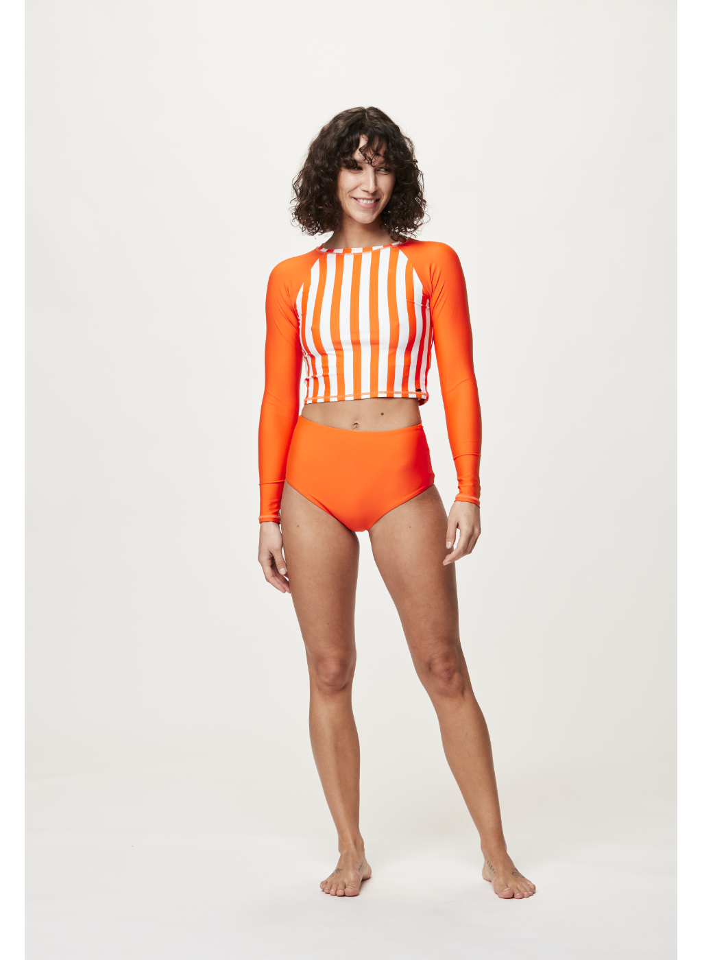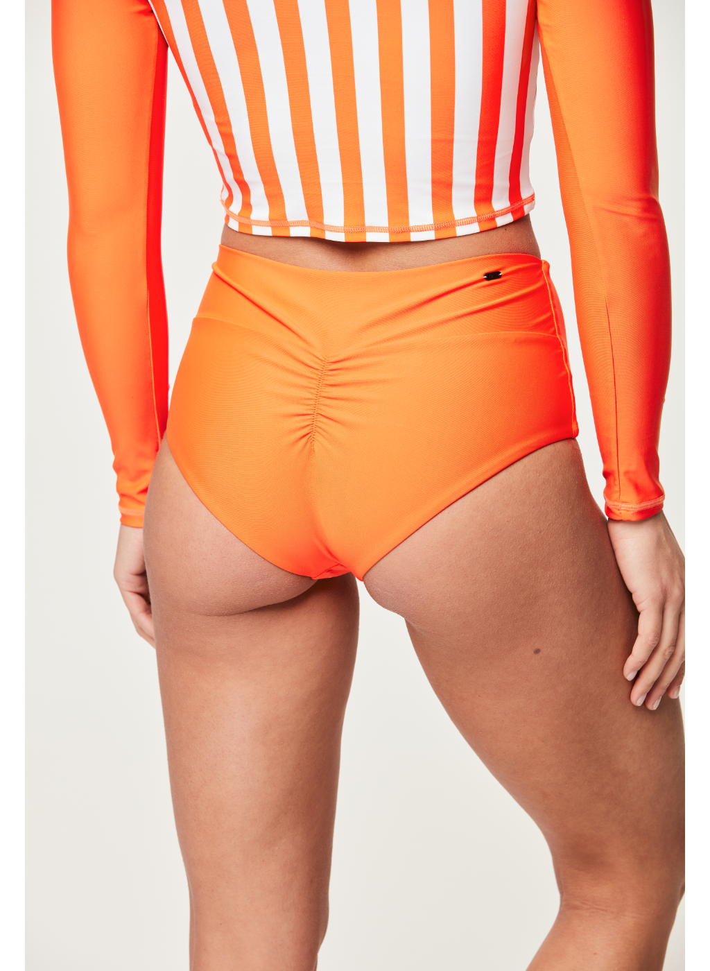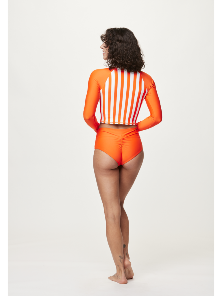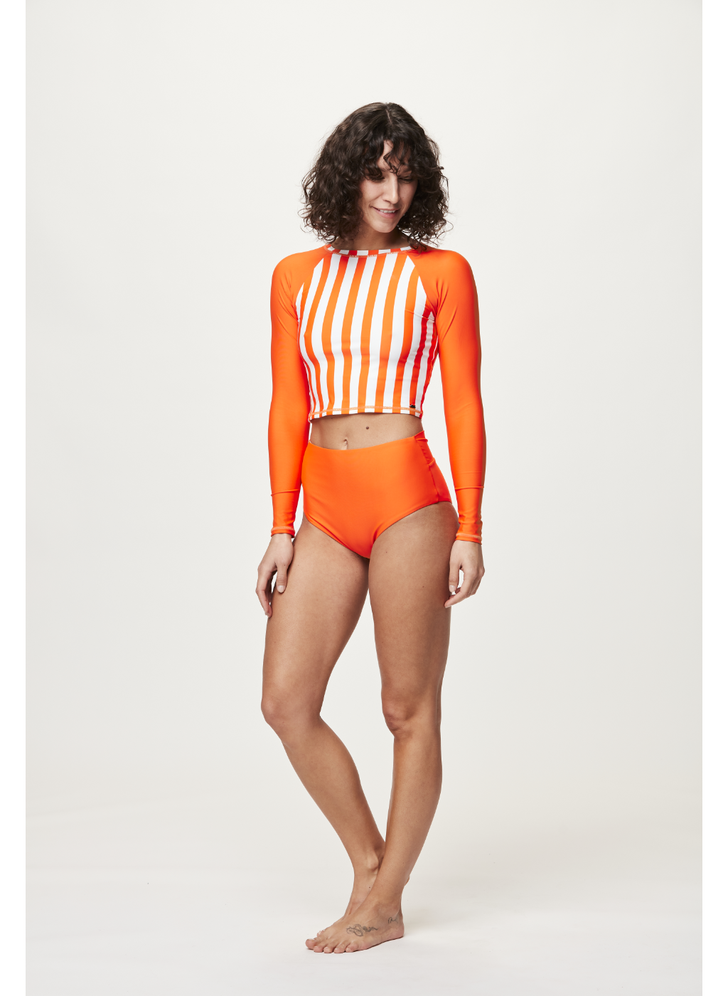 These high-waist bottoms are perfect for a retro style yet feminine look. We made them with sustainable MIPAN® regen™ recycled nylon fabric, which offers excellent stretch, a soft feel, durability, resistance to chlorine and sunscreen damage, and UPF50 protection. Its clean lines and classic shape makes it a piece of swimwear that you just can't live without!