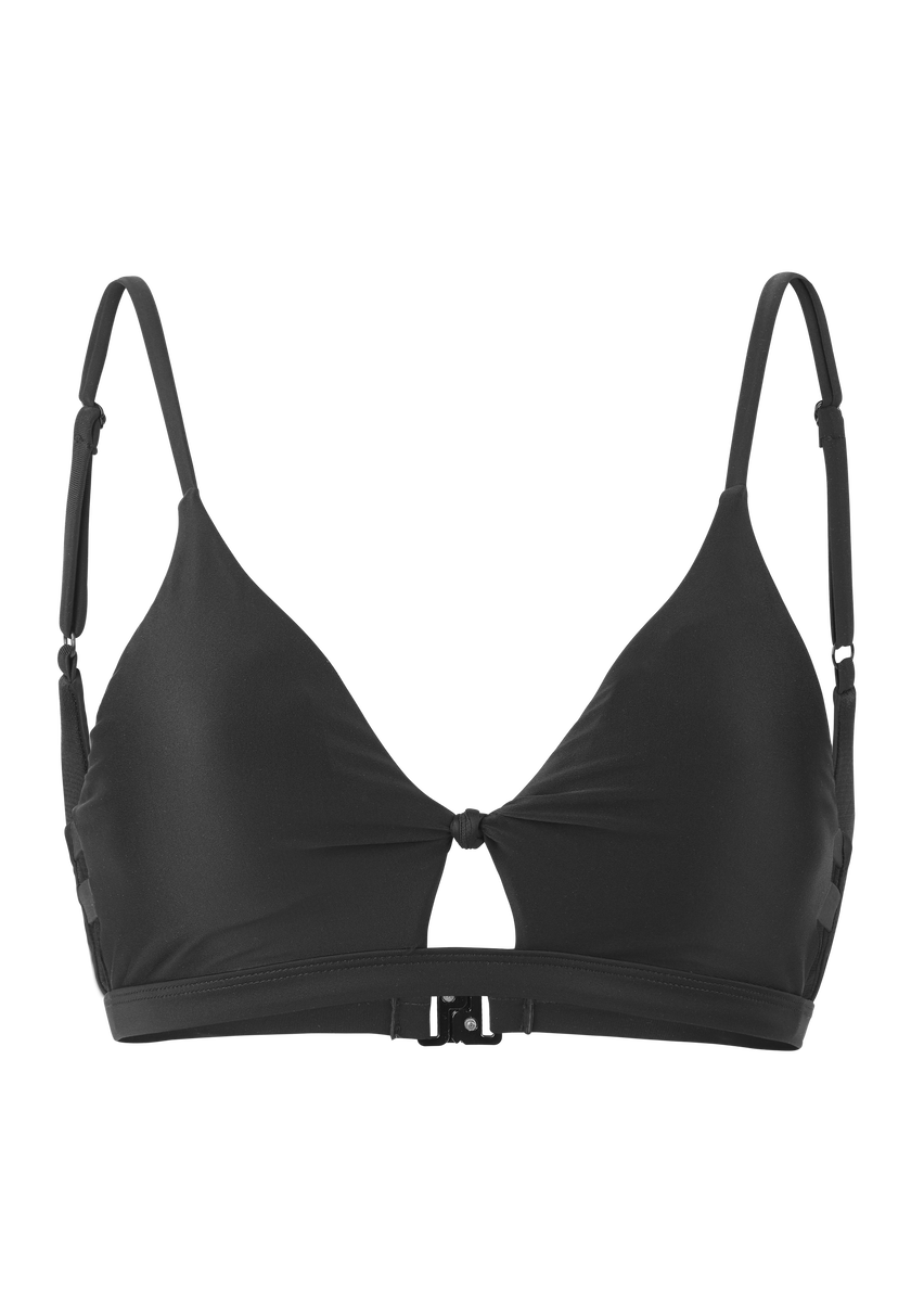 Step outside this summer with confidence and style wearing our Kalta triangle top. Its feminine cut and its adjustable straps will fit your shape and style, making the Kalta the perfect choice for more active days by the water. We made this top with technical and sustainable MIPAN® regen™ recycled nylon fabric, which offers excellent stretch, a soft feel, durability, resistance to chlorine and sunscreen damage, and UPF50 protection. It also features Dry Feel antimicrobial treatment to ensure greater comfort and performance. This bikini top is fully lined with a soft stretch lining, has removable cups and a front bow detail. With the Kalta, style and performance go hand in hand!
