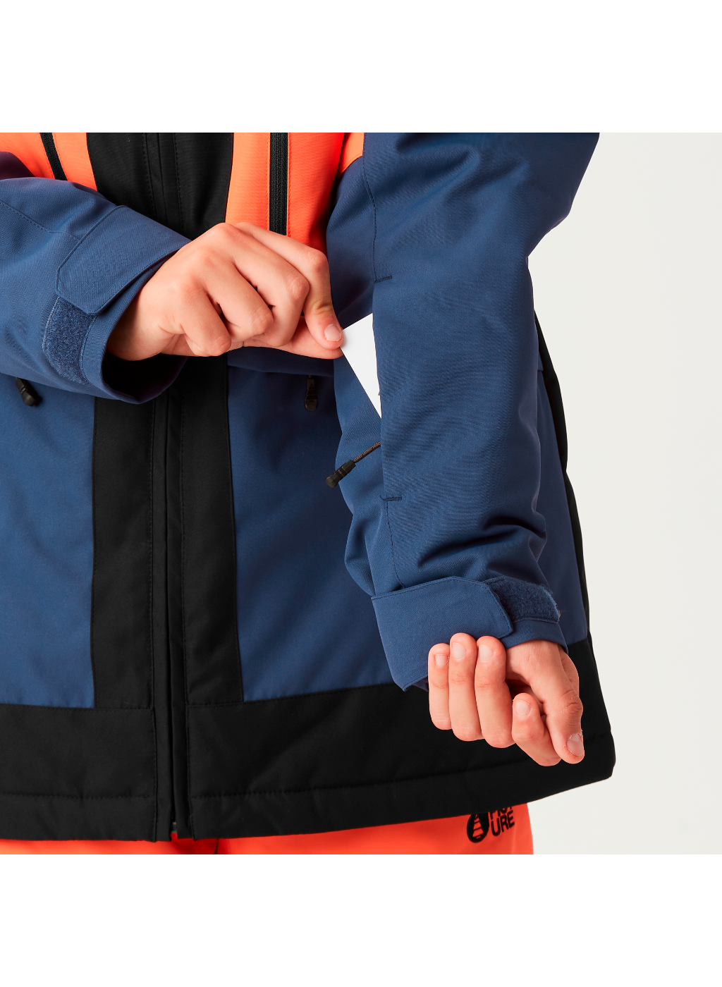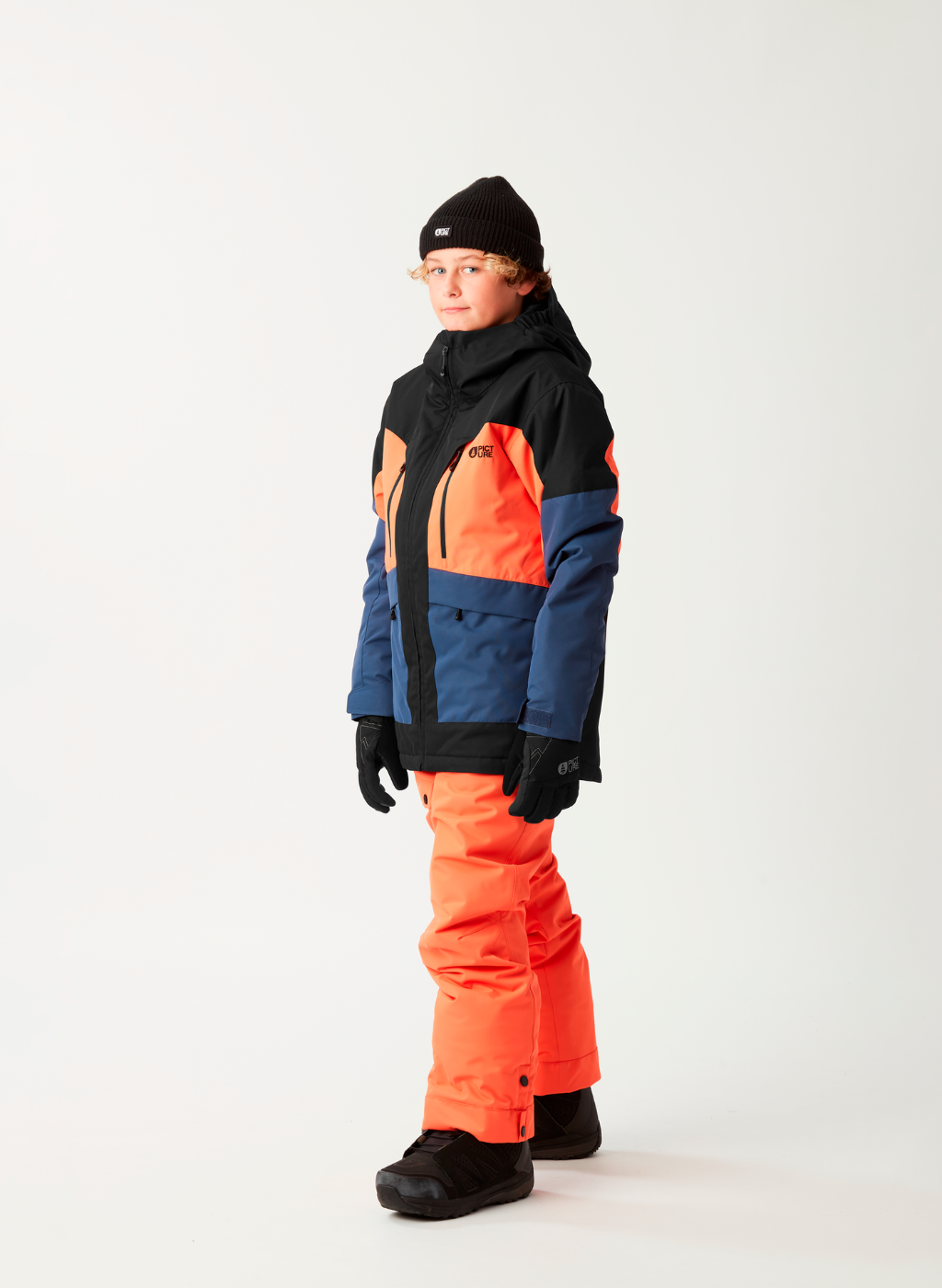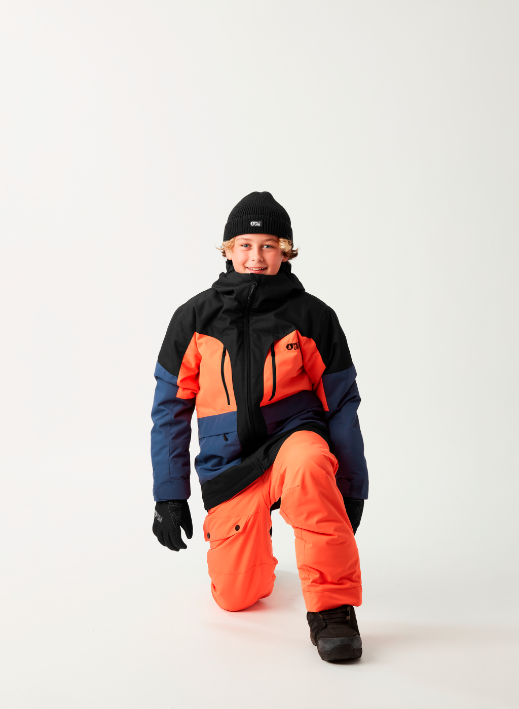 The innovative Grow-with-me system is designed to accommodate growing young adventurers, extending the lifespan of this essential piece across multiple seasons. Functionality is at the core of the MINIAKOON JKT, with a fixed snow skirt to prevent snow infiltration during off-piste excursions. Zippered hand pockets keep essential items within reach.