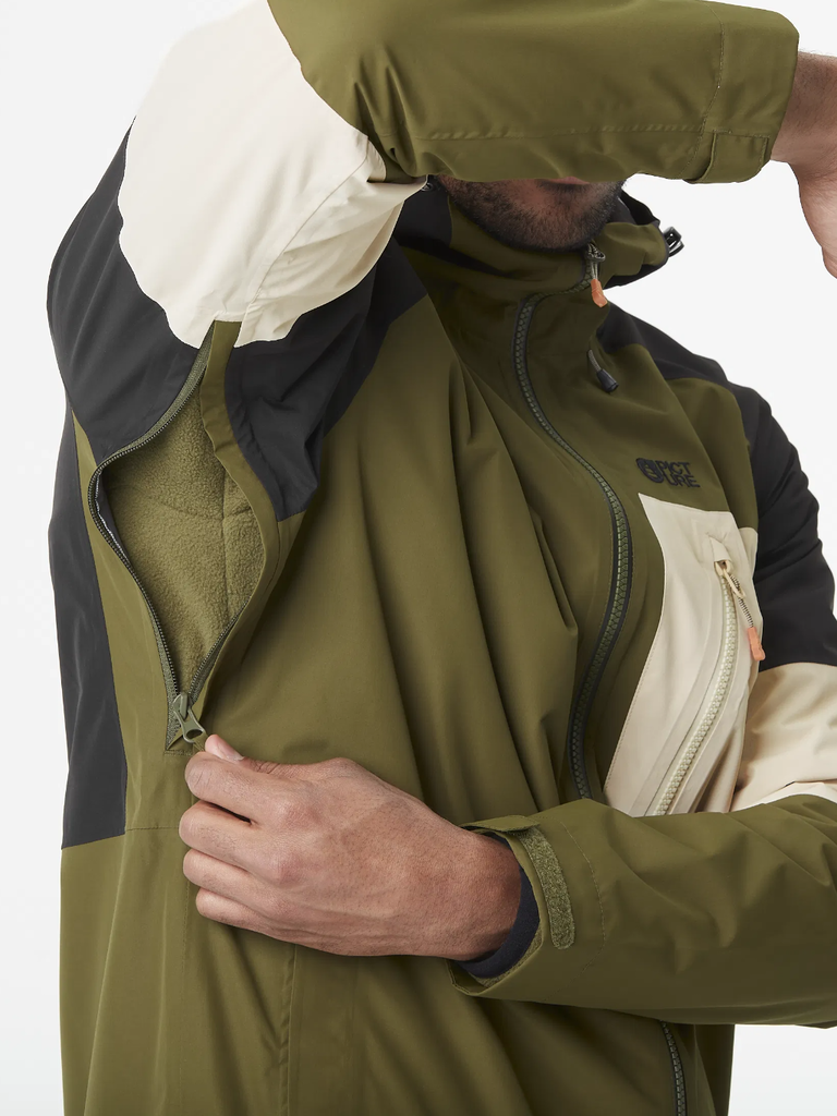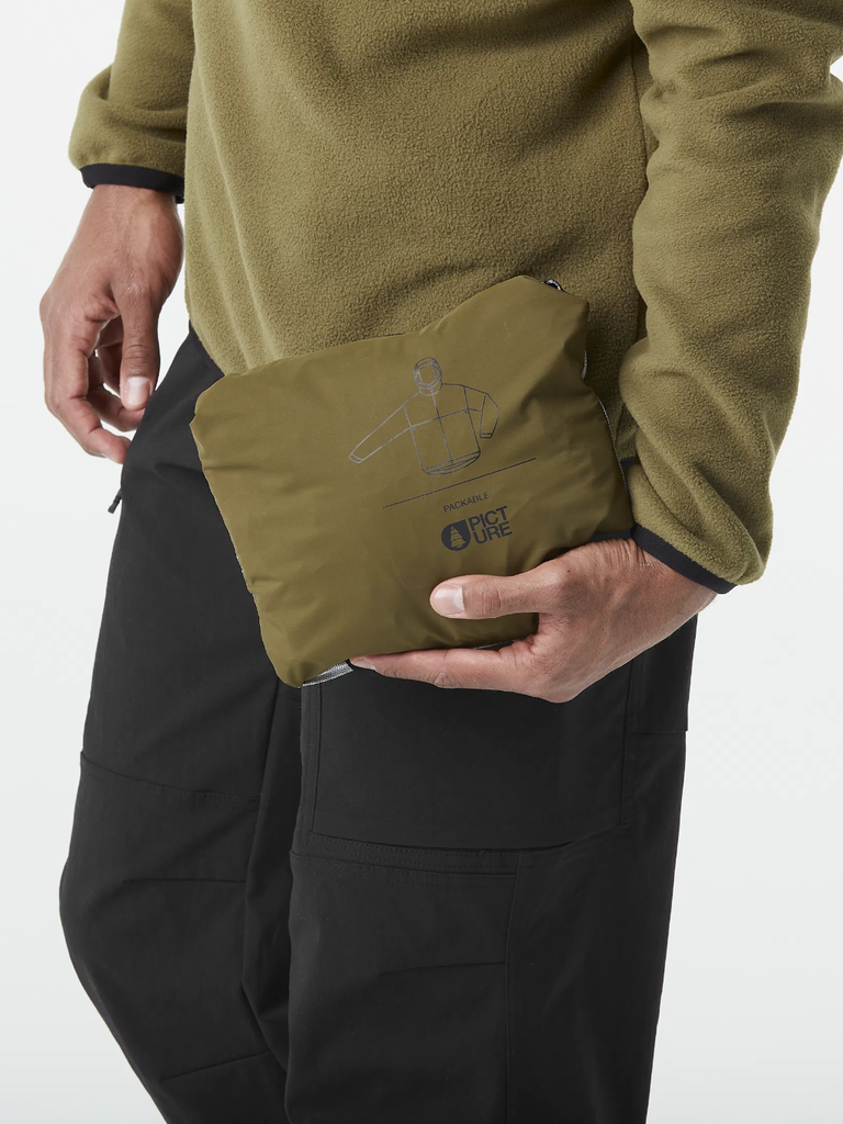 The right-hand pocket doubles as a stuff sack so that you can pack your jacket inside.