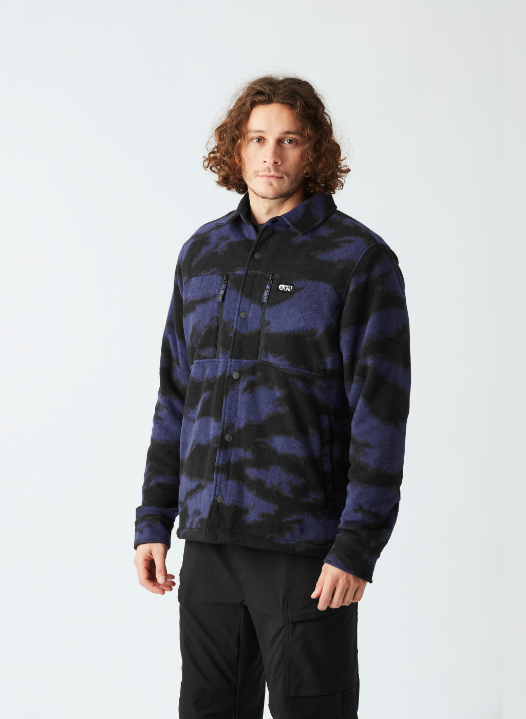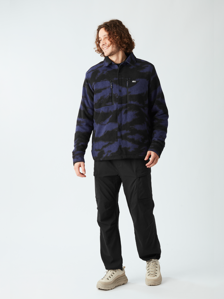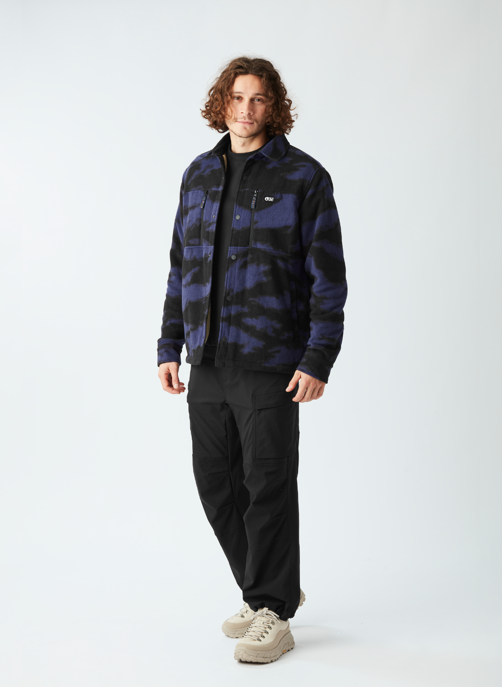 Meet the BEMIDJI JKT, a men's fleece shirt-jacket designed for the lifestyle category. This piece is a modern take on an outdoor classic, reimagined for daily wear. Constructed with 250g Fleece made from 100% Circular Polyester, it holds Global Recycled Standard and Oeko-Tex® Standard 100 certifications. The jacket offers a unique insulation combination, featuring 40 gr/m2 of Polyester in the sleeves and 60 gr/m2 in the hood, providing versatile warmth and comfort. When it comes to functionality, the front opening is equipped with black rubber buttons, both stylish and durable. Two patched chest pockets offer easy access to essentials, while snap button cuffs allow for an adjustable fit. Additional storage comes in the form of hand pockets with zips, and an interior pocket adds an extra layer of convenience. Blending outdoor ruggedness with urban sensibility, the BEMIDJI JKT is the epitome of style meeting function.