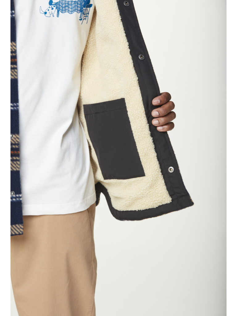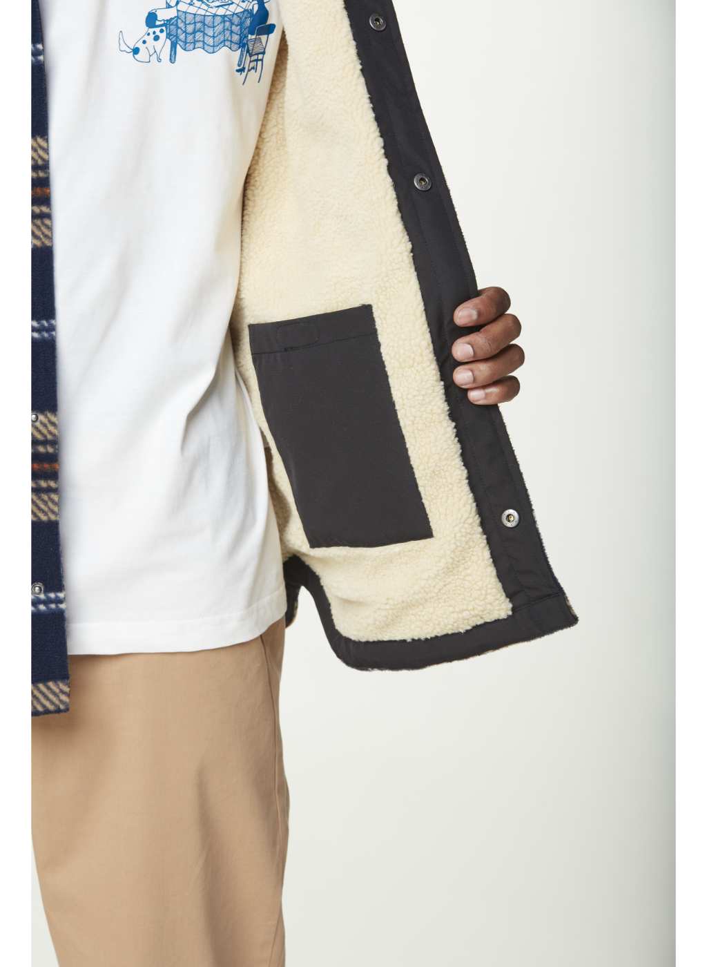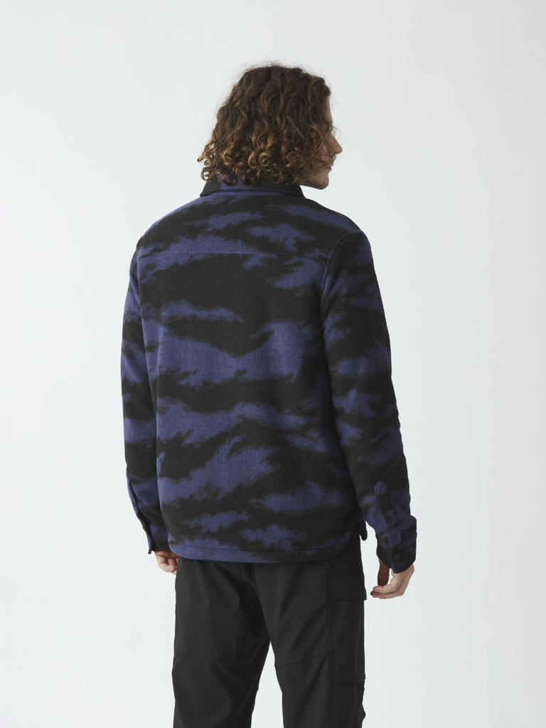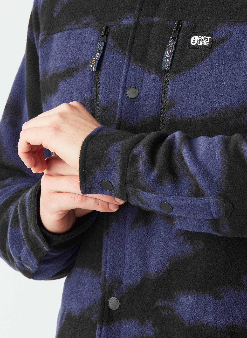 Meet the BEMIDJI JKT, a men's fleece shirt-jacket designed for the lifestyle category. This piece is a modern take on an outdoor classic, reimagined for daily wear. Constructed with 250g Fleece made from 100% Circular Polyester, it holds Global Recycled Standard and Oeko-Tex® Standard 100 certifications. The jacket offers a unique insulation combination, featuring 40 gr/m2 of Polyester in the sleeves and 60 gr/m2 in the hood, providing versatile warmth and comfort. When it comes to functionality, the front opening is equipped with black rubber buttons, both stylish and durable. Two patched chest pockets offer easy access to essentials, while snap button cuffs allow for an adjustable fit. Additional storage comes in the form of hand pockets with zips, and an interior pocket adds an extra layer of convenience. Blending outdoor ruggedness with urban sensibility, the BEMIDJI JKT is the epitome of style meeting function.