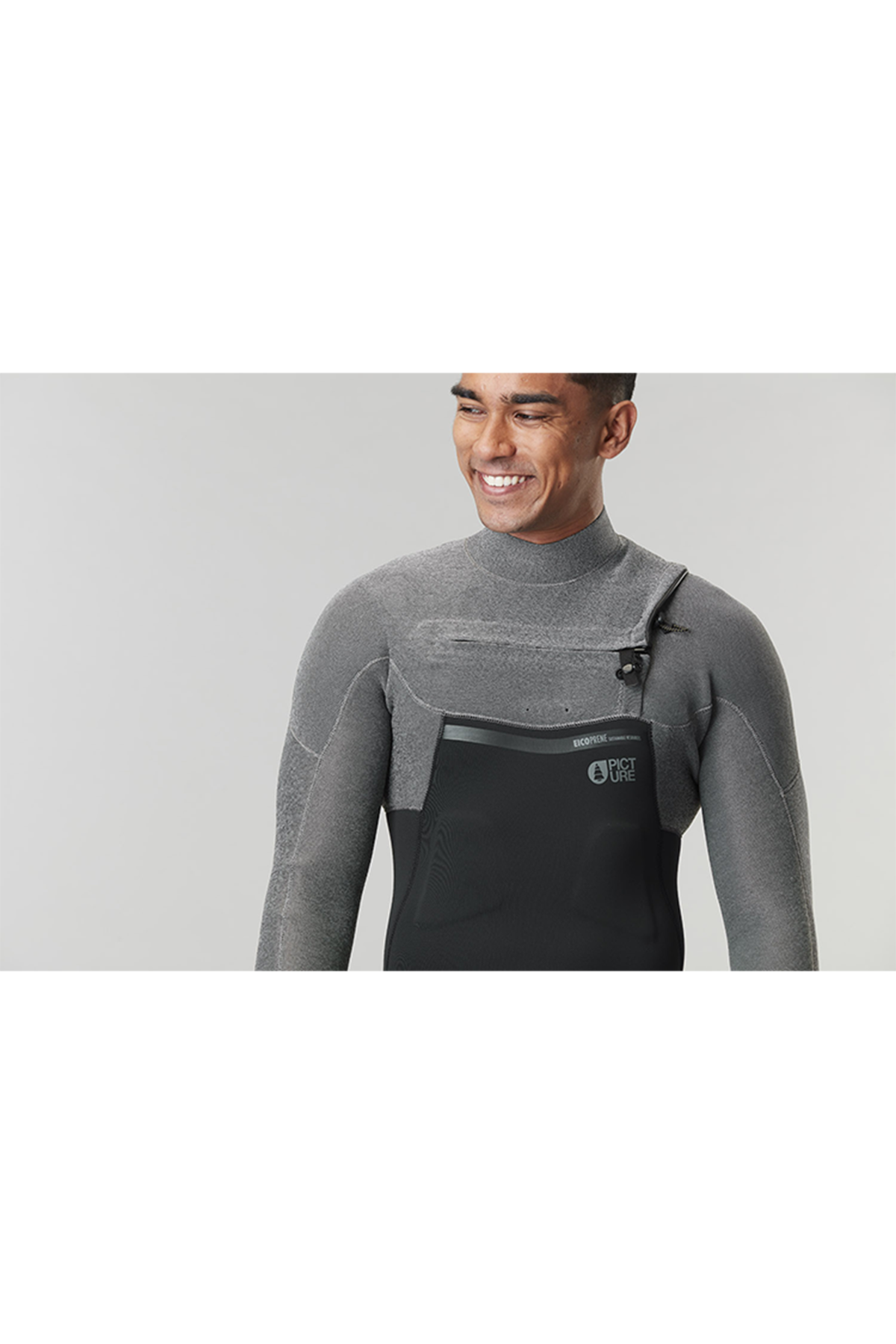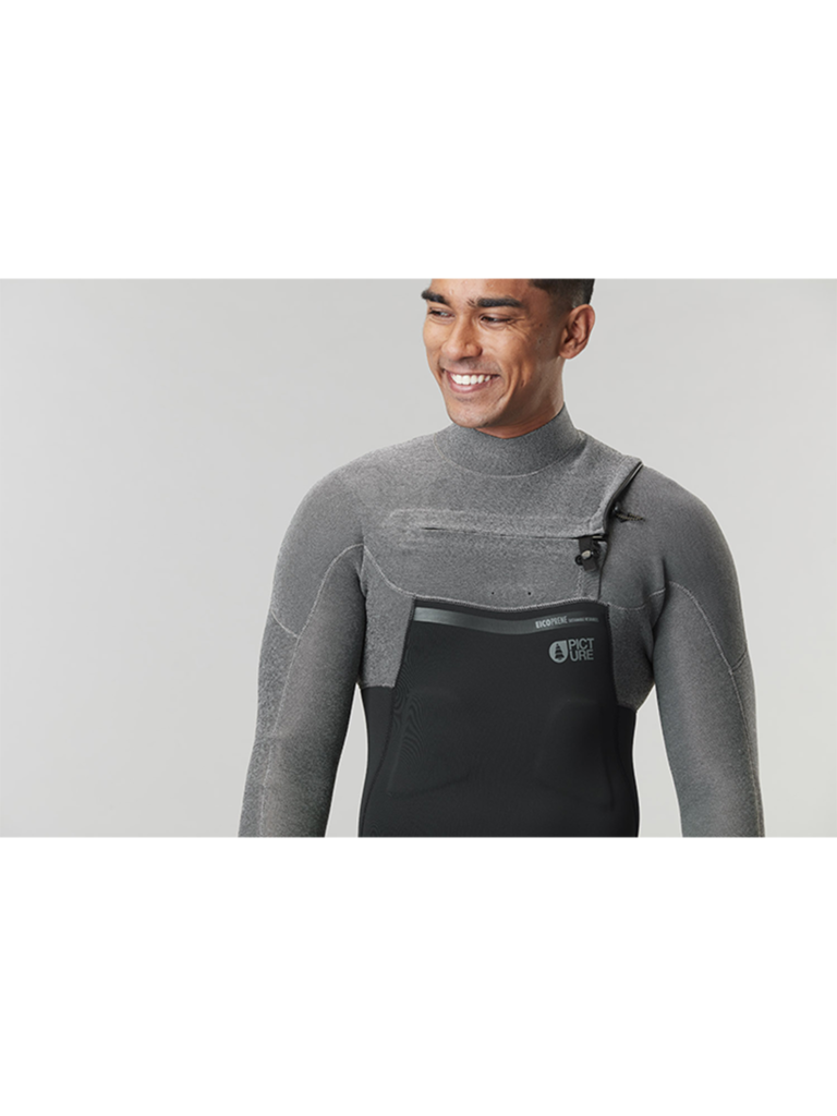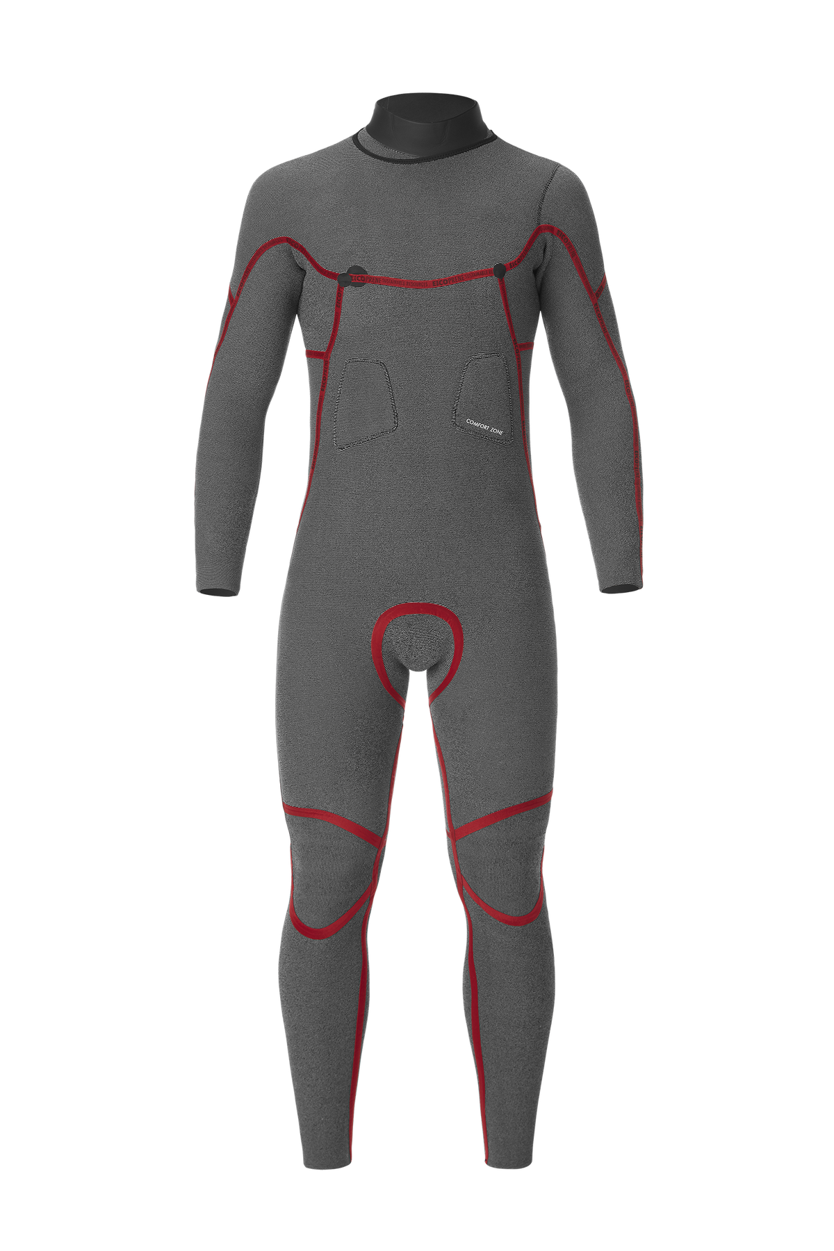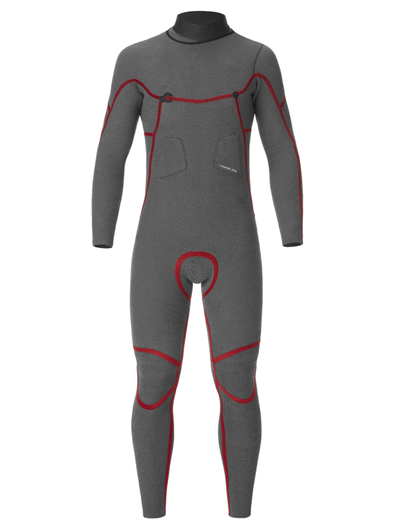 Paddling has never been so good! Featuring our brand new FlexSkin technology, the Equation 4/3 FlexSkin FZ is an ultra-stretch, heavy-duty wetsuit for chilly water in the spring and summer! Equation wetsuits are made with Eicoprene, a non-petroleum-based synthetic foam derived from a mix of limestone and recycled tires (30%). To laminate the recycled polyester lining we use Aqua-A™, a solvent-free water-based glue with no harmful chemicals. The equation 4/3 Front Zip version is designed for 52°F-63°F water. The WPF lining (Warmth Performance), our warmest lining available, makes this wetsuit stand out. The 3D-Knit construction and the WPF lining provide warmth by trapping air between each loop. The denser fabric offers extra comfort. Its front zip and watertight seals minimize water entry. Comfort zones protect your ribs when paddling. It also features glued, blind-stitched, fully taped seams (GBS), which provide protection, stretch, and water resistance.