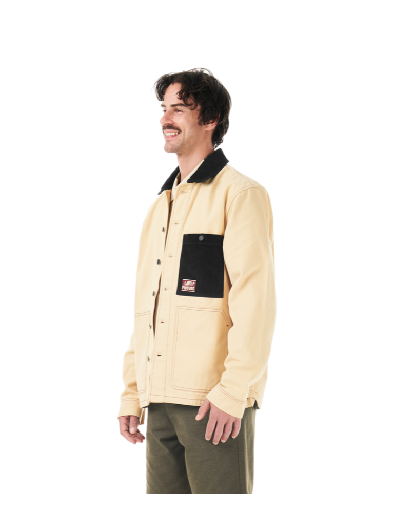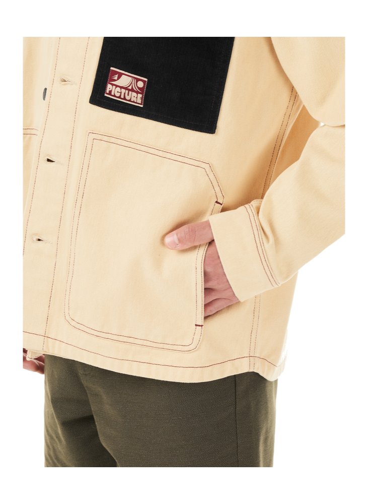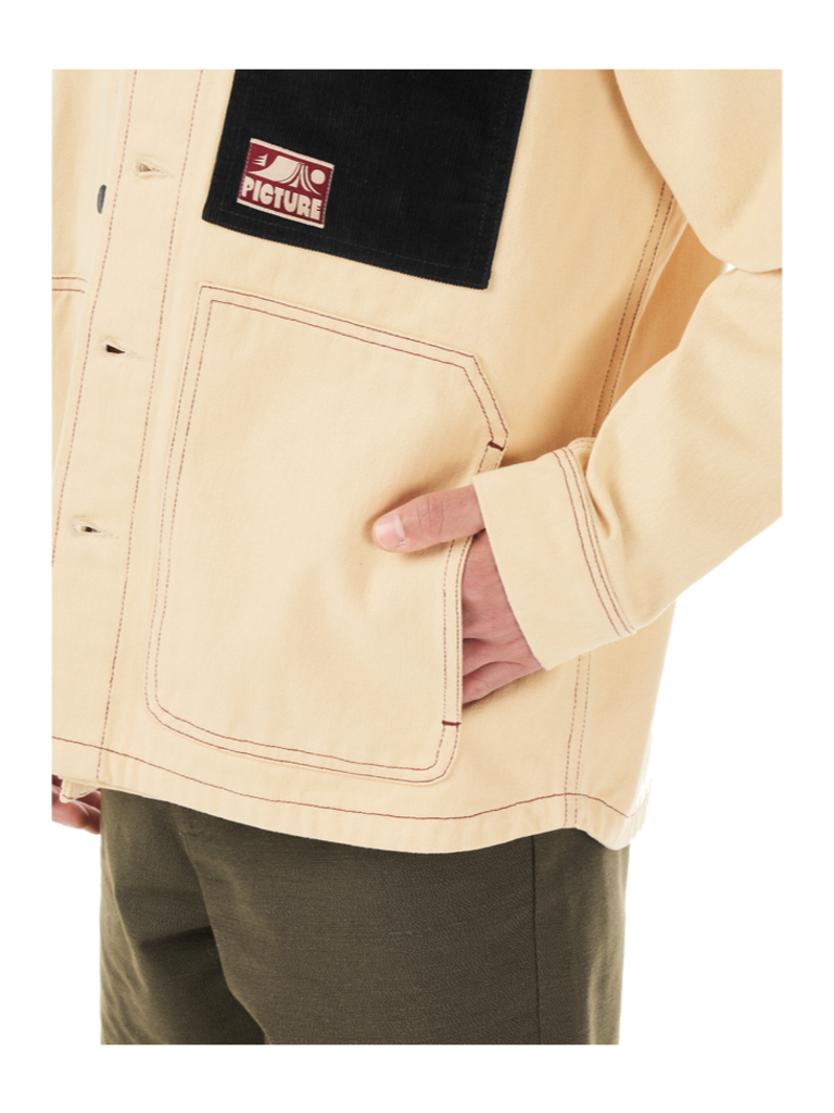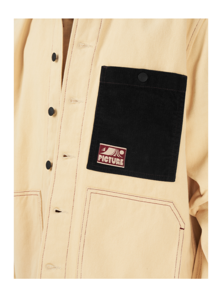The KATMEETH JKT is worthy of daily wear with a distinctive, timeless style. Made from comfortable cotton twill, this workwear-inspired jacket is both rugged and refined. The KATHMEETH JKT is distinctly styled, featuring contrasting seams, a classy corduroy collar, dual hand pockets, and a chest pocket with a discreet Picture badge. Designed to last, and carry that "workwear" look—whether you’re going to work or not—the KATMEETH JKT is a high-utility, low-frills multi-season piece for your daily commutes and destinations unknown.
