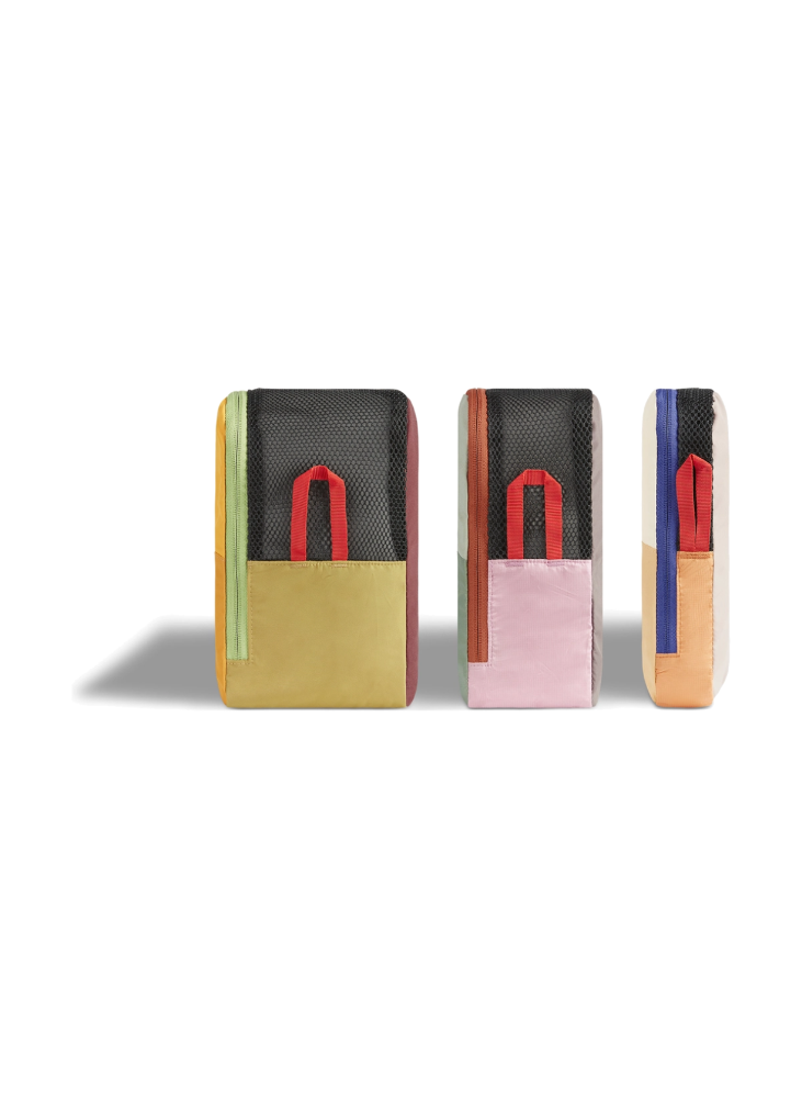 Engineered with breathable mesh side panels, these cubes ensure items remain ventilated, while the convenient side strap offers hassle-free carrying and access. Ethically crafted from the remnants of our ski jackets, these unique cubes not only add order to your travels but also honor our commitment to sustainability, making them a great choice for the conscious traveler.