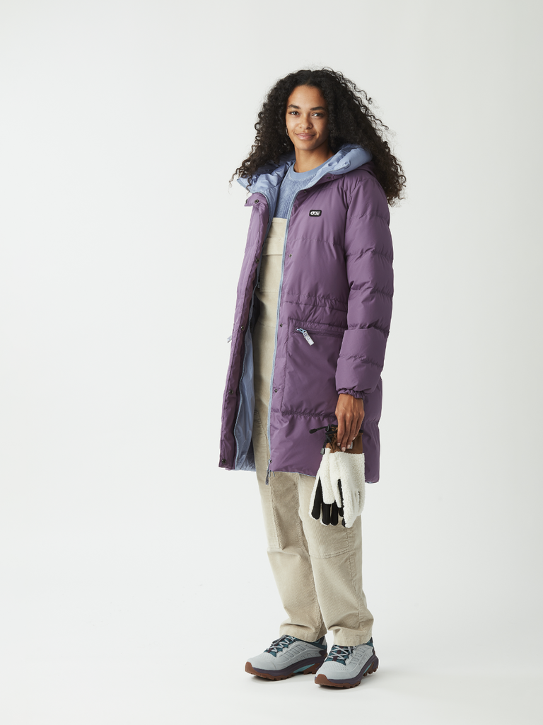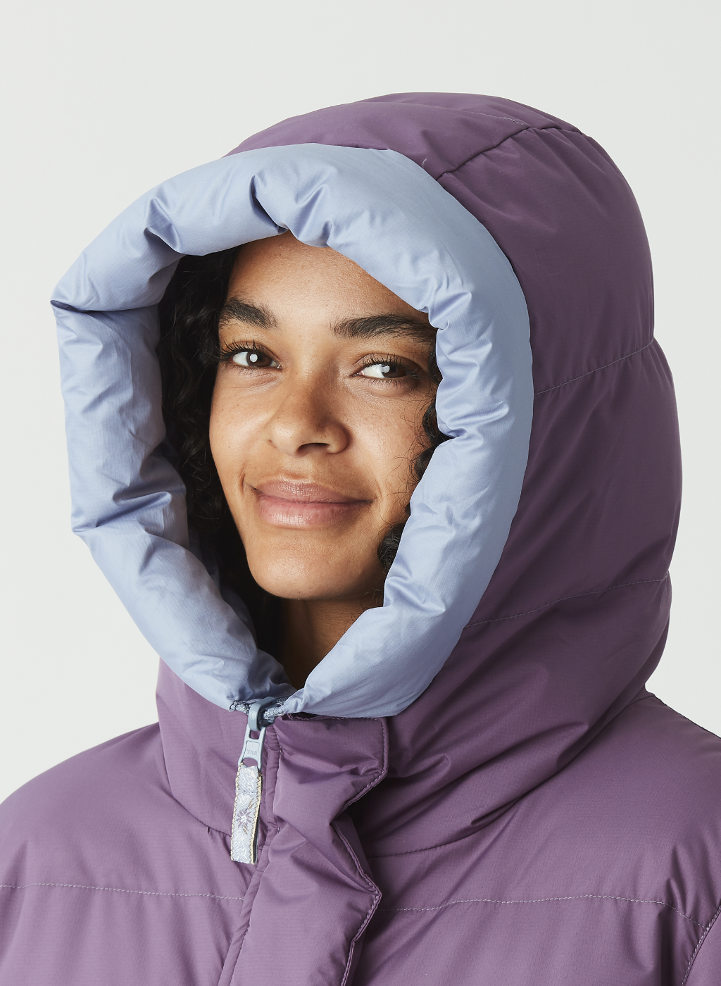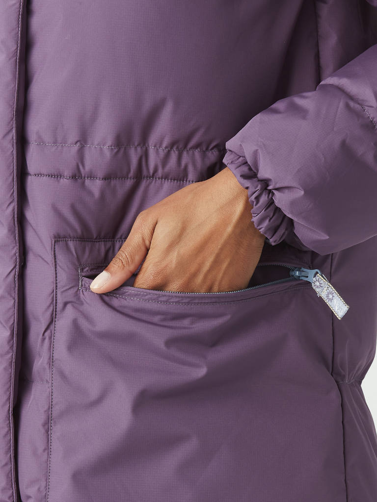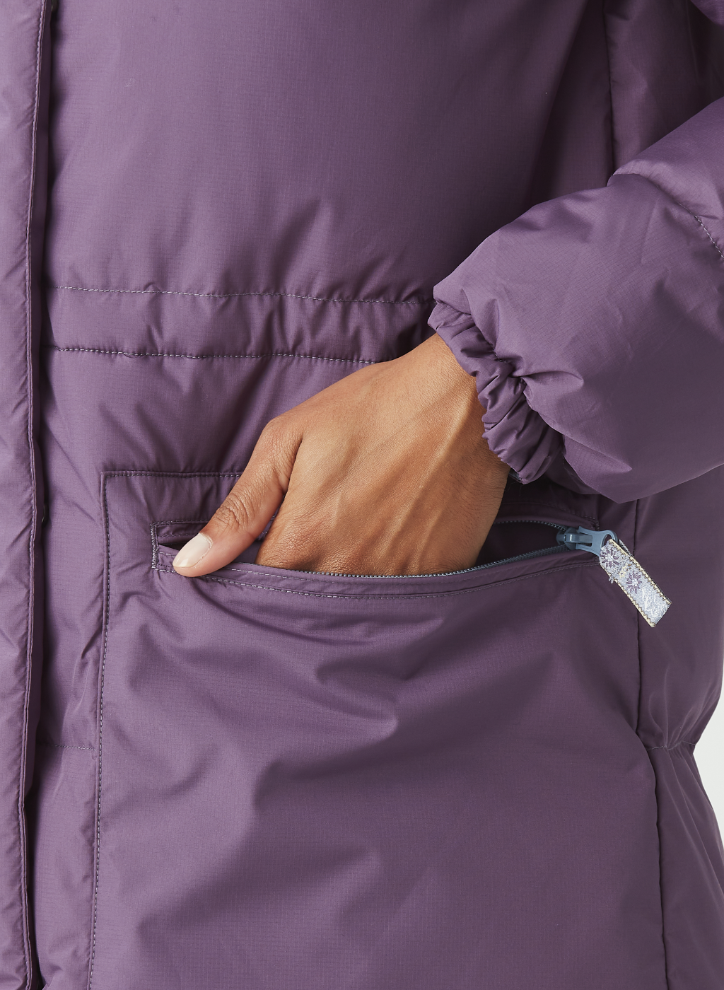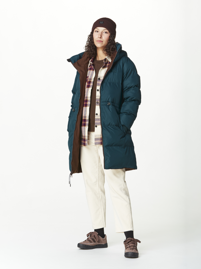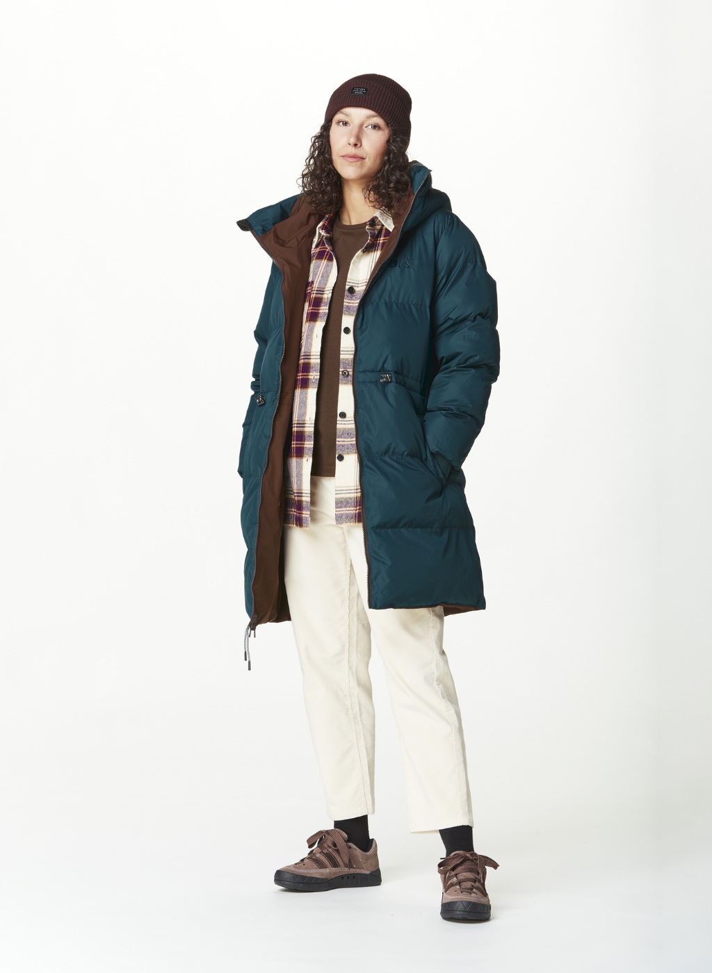 The Inukee Jacket is a reversible puffer parka jacket. Designed for extra-warmth and comfort, it is sustainably crafted from a recycled polyester blend fabric. It features thick recycled synthetic insulation, our sustainable membrane, and a PFC-free durable water repellent treatment to keep you warm and dry during the coldest days this winter. It also comes equipped with an insulated ergonomic hood, multiple pockets, and elastic cuffs for added comfort. For twice the style, this long jacket is your best option for staying warm and cozy all winter long.