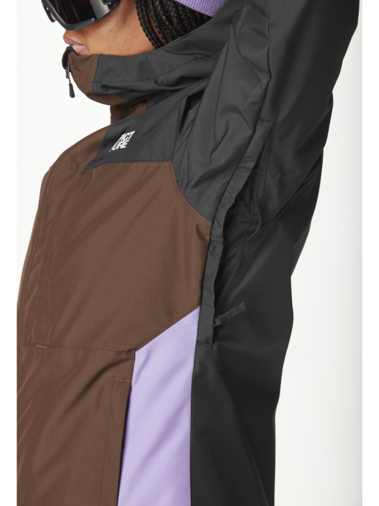 The Seakrest 2-layer jacket, with Picture's signature color-block style, delivers on its promises for long days on the slopes. Made from durable recycled polyester, it features a 10K/10K membrane for optimal breathability and waterproofing, enhanced by a PFC-free durable water repellent treatment. Designed for warmth and comfort, this jacket also includes zippered vents for easy temperature control during long days on the slopes. For improved protection and fit, the hood, cuffs, and hem are all adjustable. With its long back cut and classic style, this jacket is perfect for enjoyable days on the ski slopes as well as winter outings in the city.