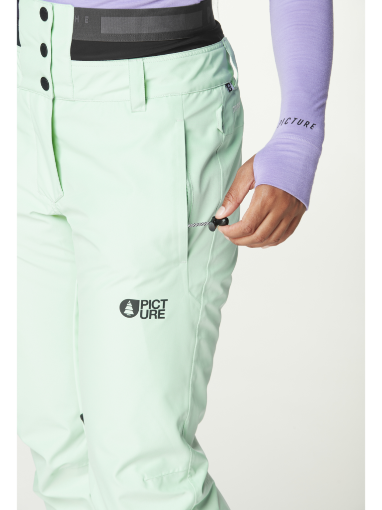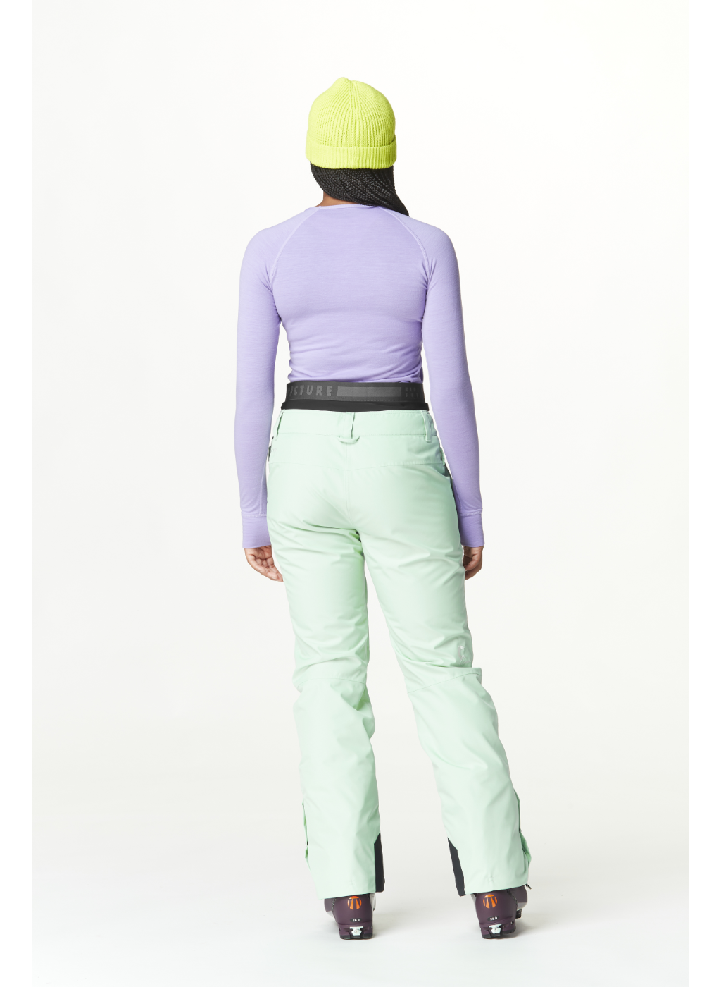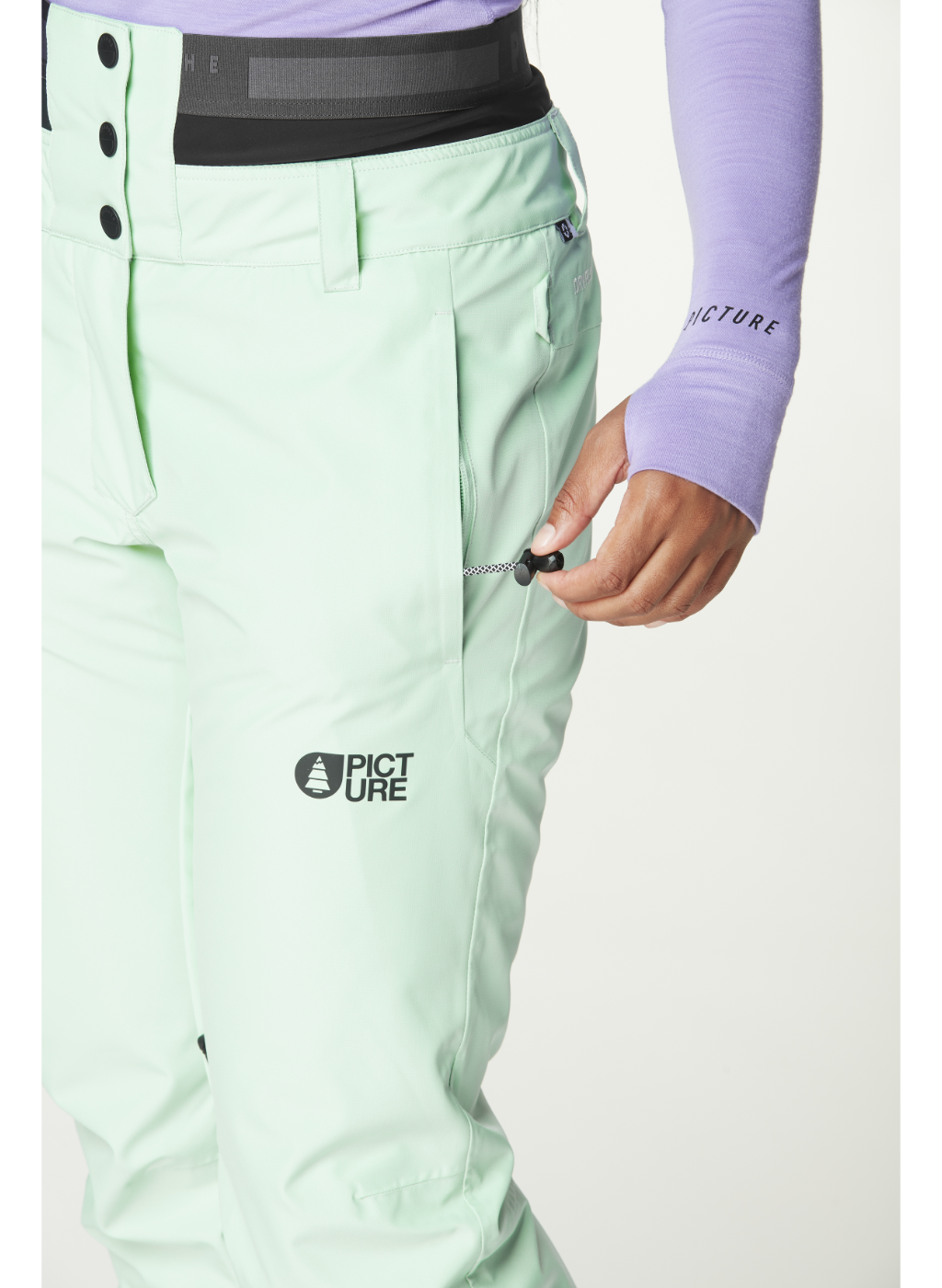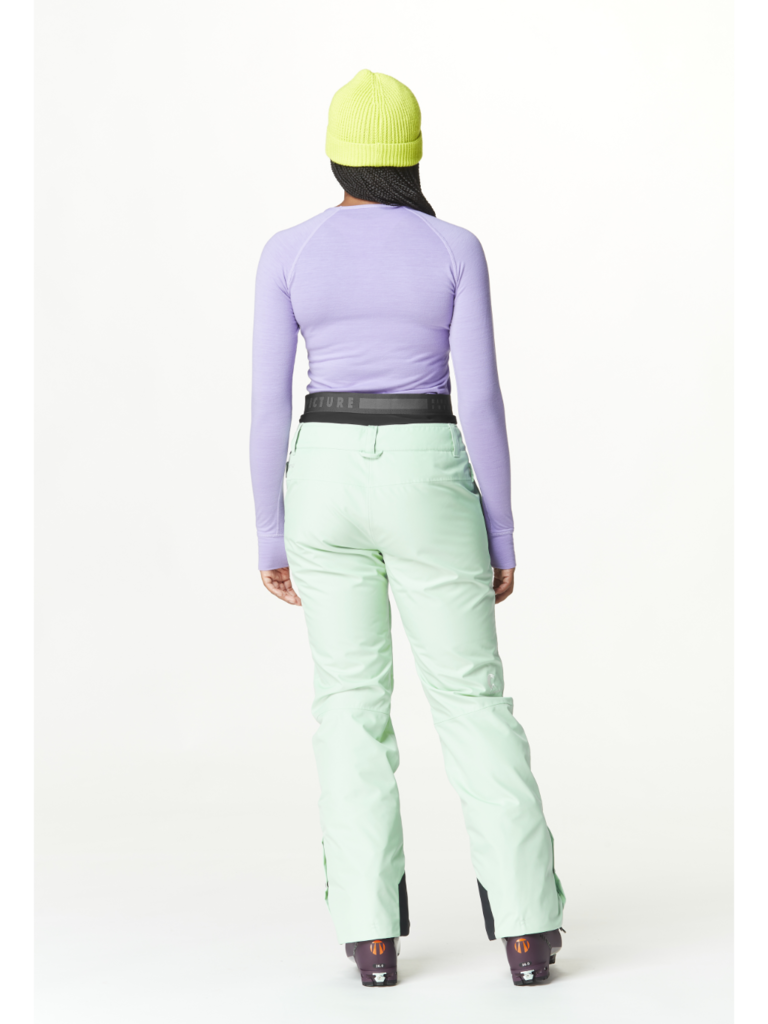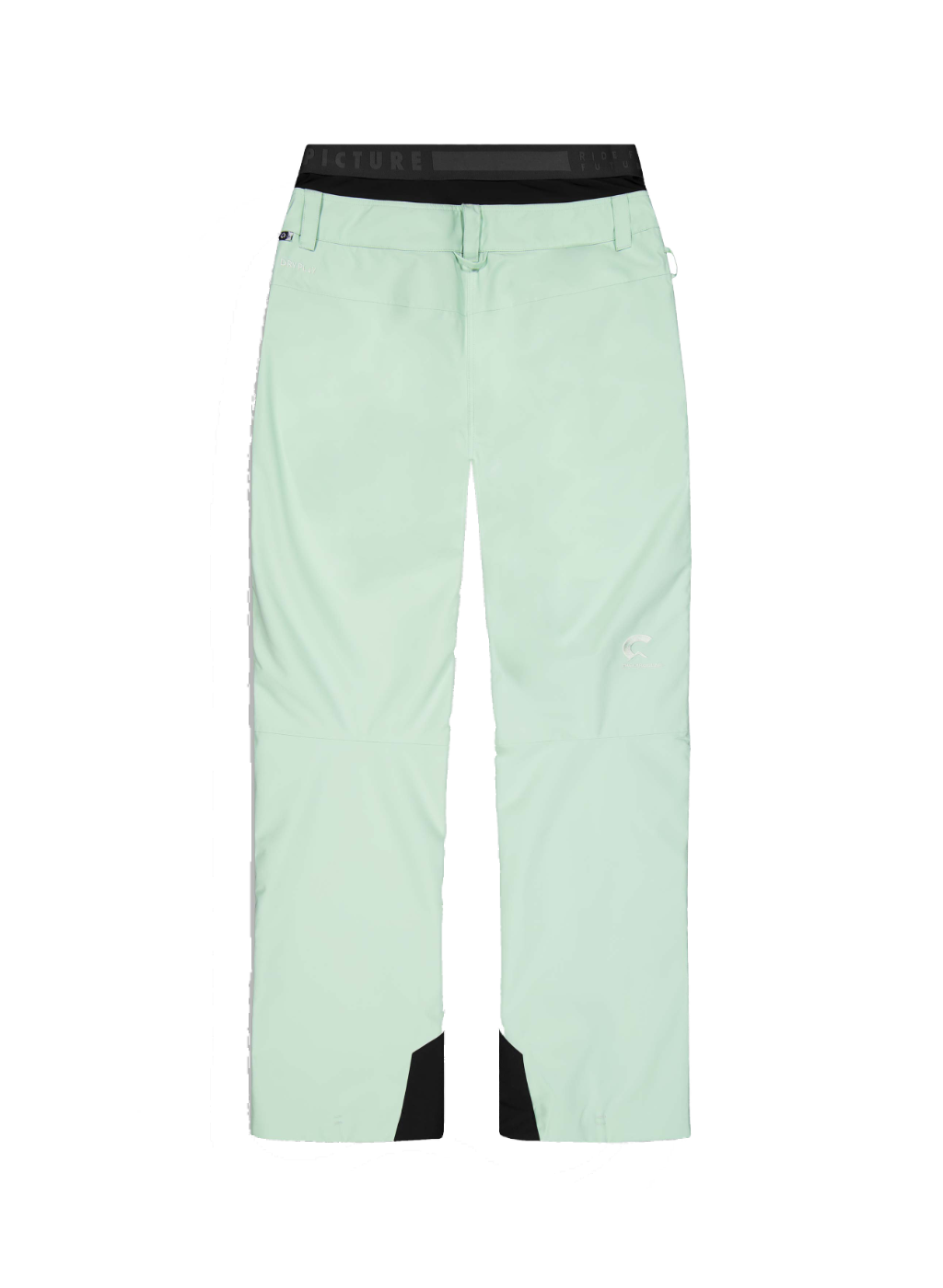 The 2-layer Exa Pants is Picture's iconic, incredibly-versatile freeride pants. Eco-designed with Circular polyester, it features a 20K/20K membrane for unmatched waterproof breathability, reinforced with a PFC-free durable water repellent treatment. Designed for versatility and warmth, the pants offer additional ventilation when playing hard in the powder. With 4-gram insulation and a waist gaiter, these pants keep you warm while keeping snow out. Designed for versatility, thigh zips offer additional ventilation when playing hard in the powder. These straight-fit pants are an excellent shell layer whenever you click into your skis.