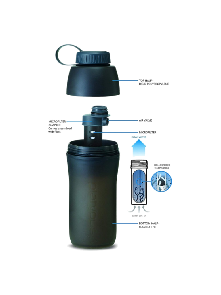 - Packable + Tough: Bottle can be compacted down to half its size (with filter removed), making it convenient to pack. Top half of bottle is impact resistant; flexible lower half is unbreakable.
