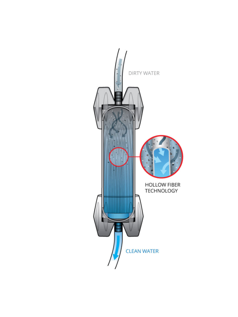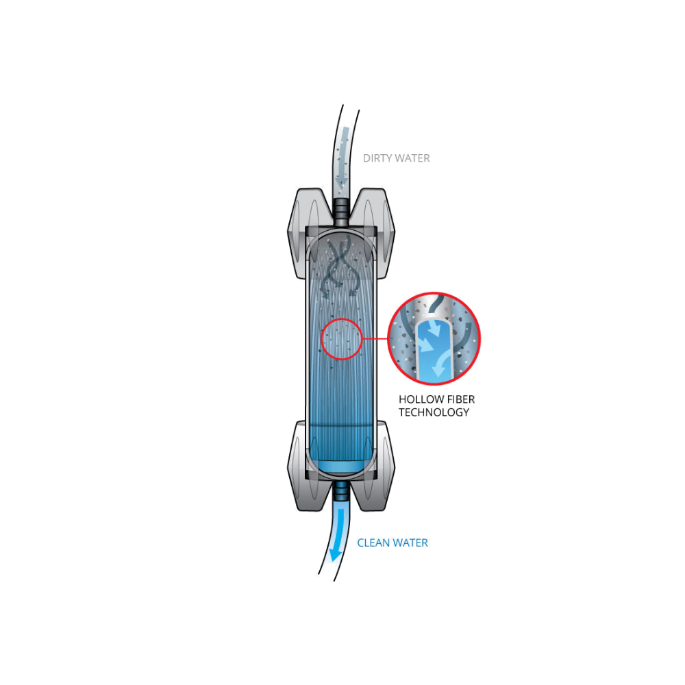 - Hollow Fiber Advantage: Hundreds of tiny, hollow fibers enable the microfilter to filter water faster than traditional filter media.