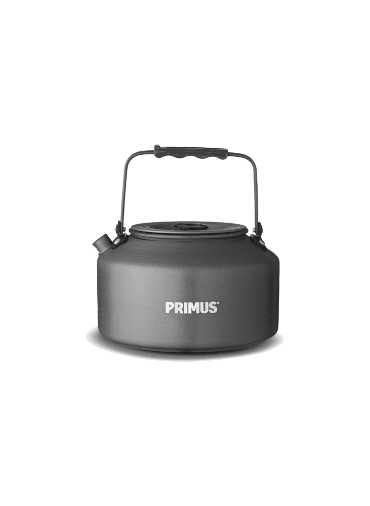 The durable hard-anodized aluminum kettle heats up water quickly and the narrow pour spout allows you to easy fill any cup, jug or mug. The folding handle pivots up when needed and folds out of the way when packed.