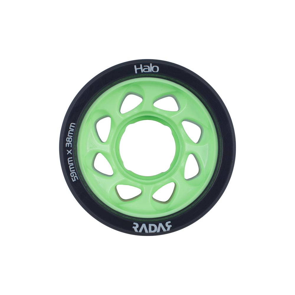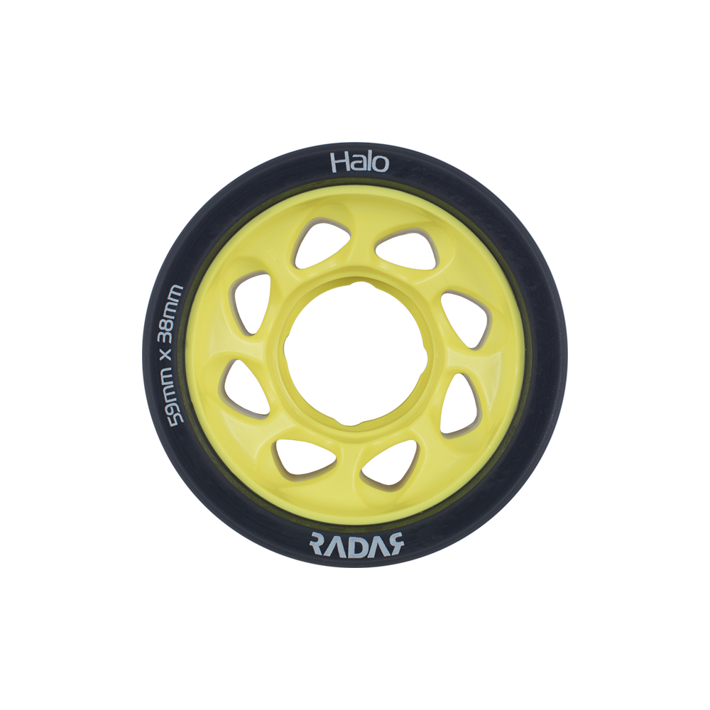 Create an accountAchieve world-class edging without sacrificing grip! The shockingly lightweight Radar Halo features our innovative, signature H-shaped hub. The inner and outer edges of the hub are oversized, which reduces the amount of urethane on the edges of the wheel. This makes it easy to perform stops and offers excellent response. The middle of the hub has room for more urethane, which offers grip, increases control, and improves ride. The Halo is sold in packs of four wheels. For a full set of wheels, be sure to select a quantity of two.