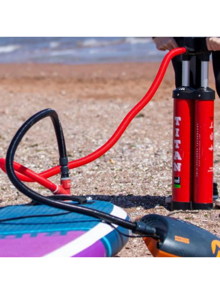 Whether your solo adventuring or heading out with company, inflate your board in record time by connecting two pumps to one board and doubling up on air.