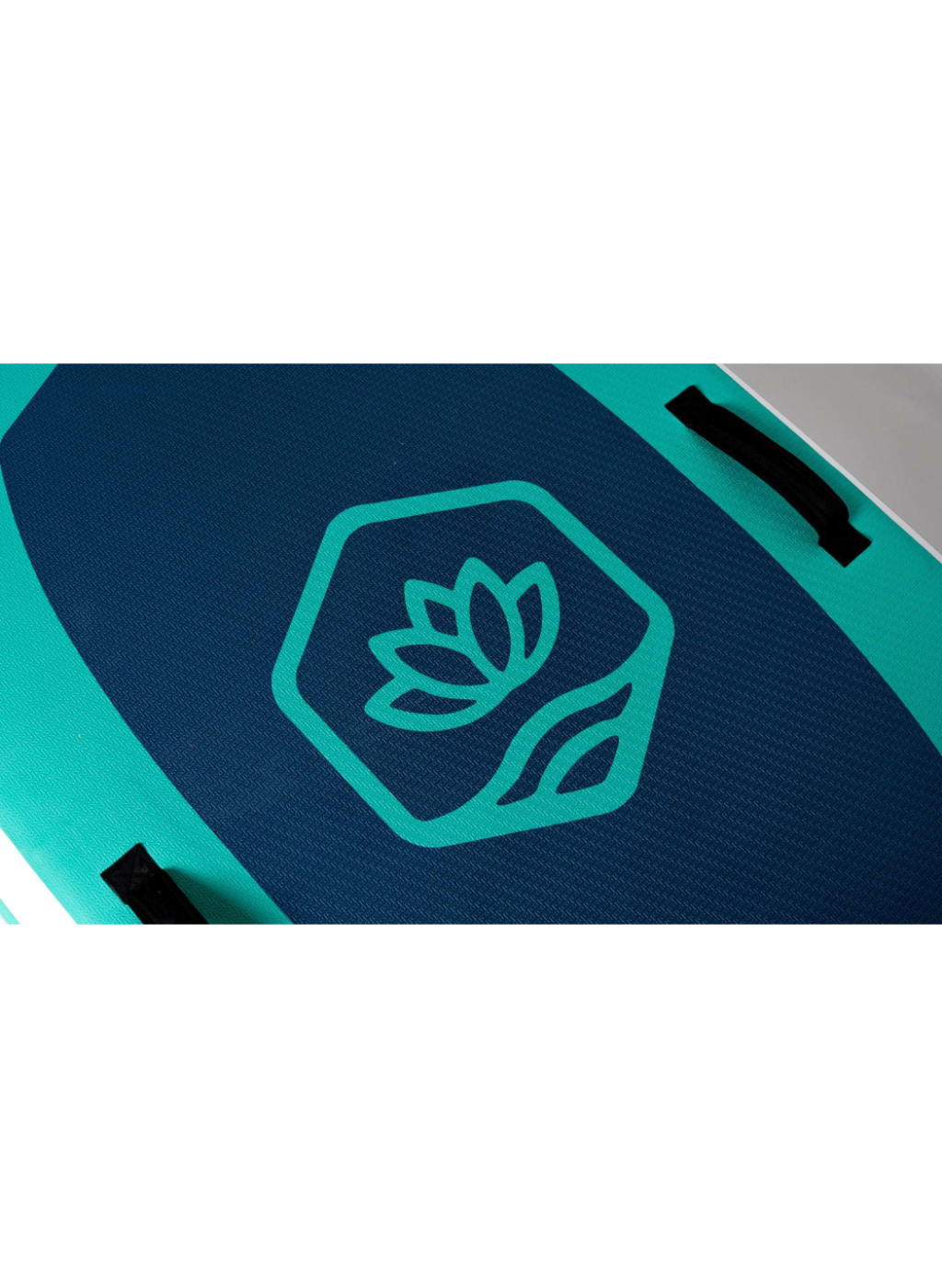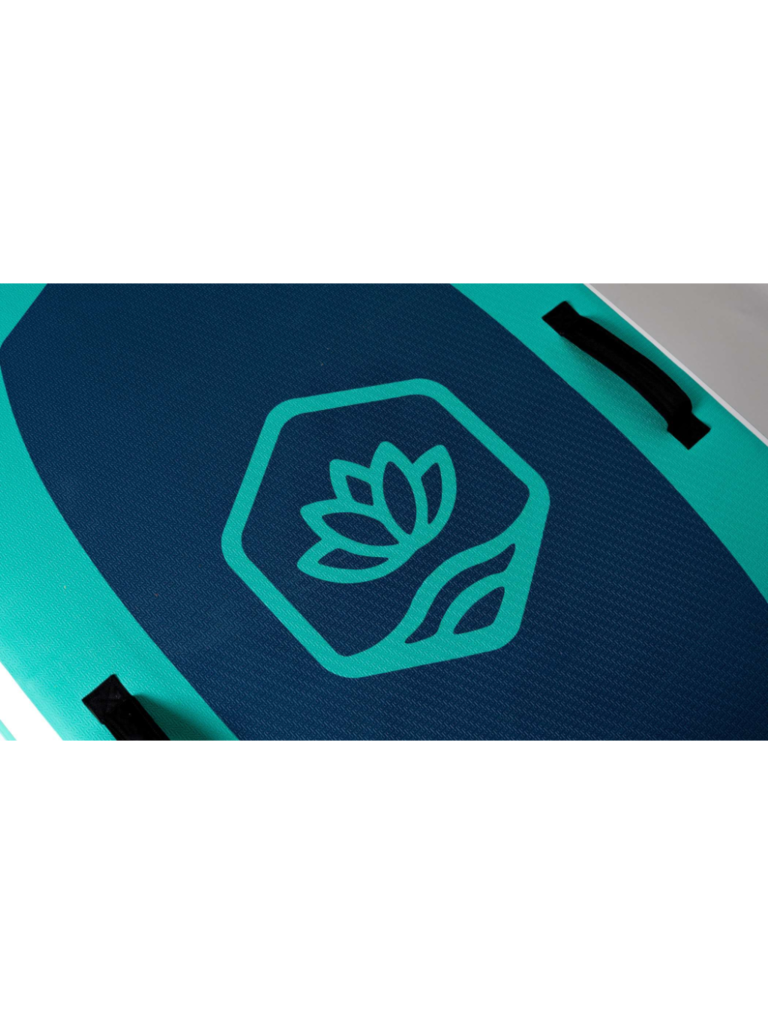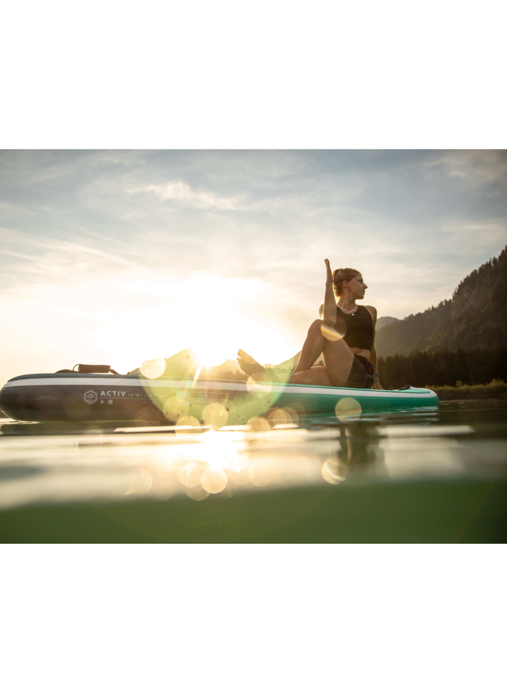 Paradoxically, the 10'8" Activ provides a solid grounding when afloat. At 34" wide, 150mm thick with a generous 333L of volume, it’s easily buoyant and rigid enough to hold steady, even in challenging positions. The full-length, embossed EVA deck pad features a bold center-line for perfect pose alignment – with handles relocated to the sides, so they don’t interfere.
