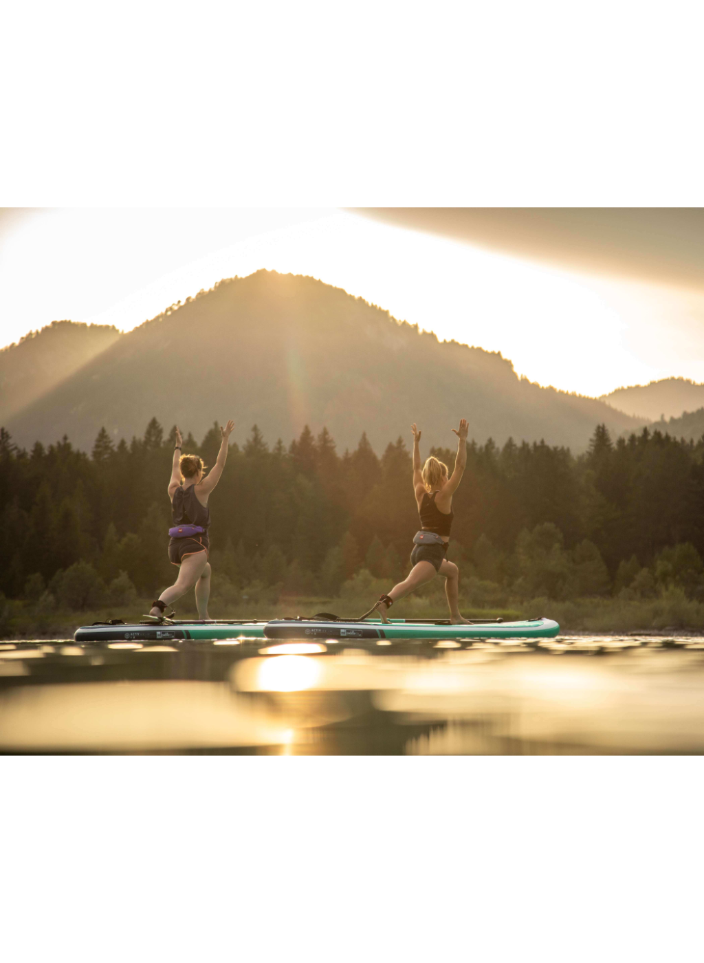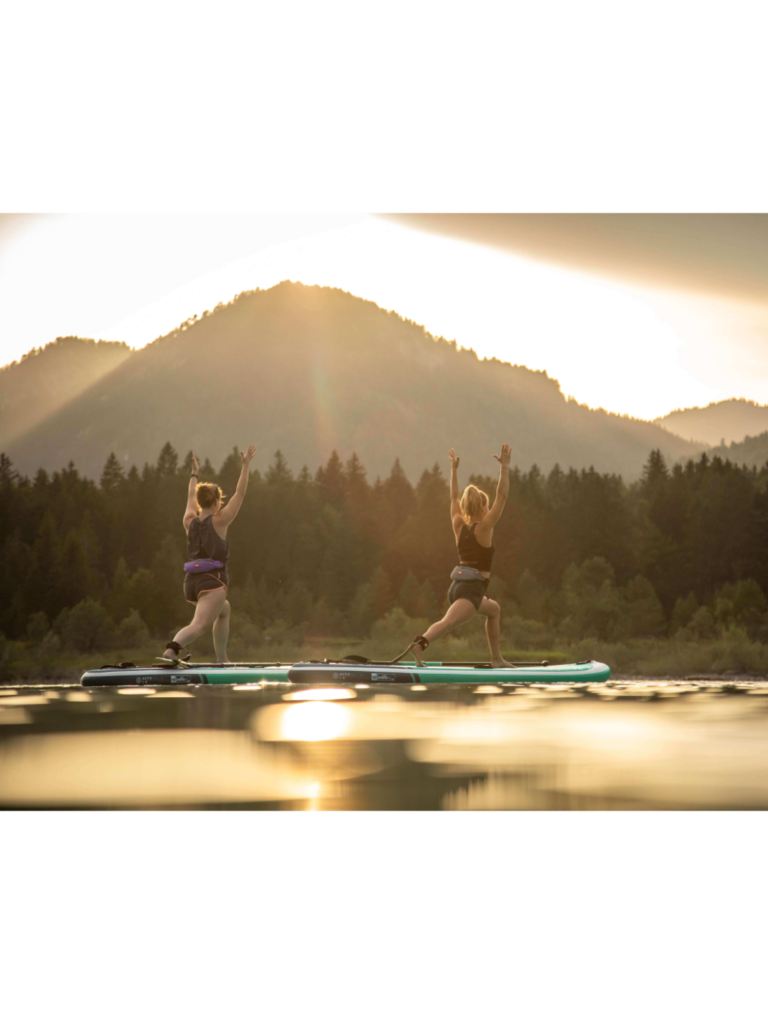 Created explicitly for SUP yoga, Pilates and stretching, the 10'8" Activ inflatable paddleboard offers a balanced and secure platform to engage with your practice on the water. Based on our proven 10'8" Ride shape, the Activ has extra thickness for even more float and stability – and to help stay dry as you flow through your poses.