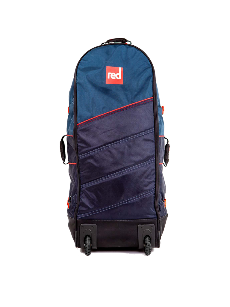 Introducing a total redesign of our all terrain backpack that offers a bagless carry system. This skeleton system means you can access more remote waterways without the need for a bulky bag and just take the straps and your pump. When using the bag, large all terrain wheels make handling rugged terrain a breeze and considered anthropometric design is able to be fully customized to your height so you can take maximum care of your body while under load. Large exterior pockets can fit any quick to grab essentials and velcro interior pocket means your paddle blade is safe and secure. The interior material has a stylish Red repeater pattern and its water resistance will minimize any intrusive damp. Additional internal storage for small items and keeping your service kit on hand.