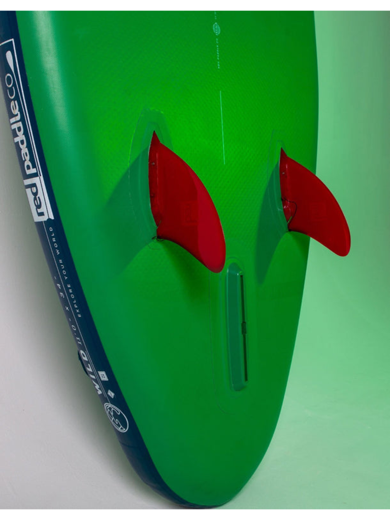 A redesigned fin set up with a US Fin box so you can insert a larger fin for improved tracking and two click fin side bits for shallow water. They are fully removable and customisable so you can choose the fin set up to suit your chosen waterway.