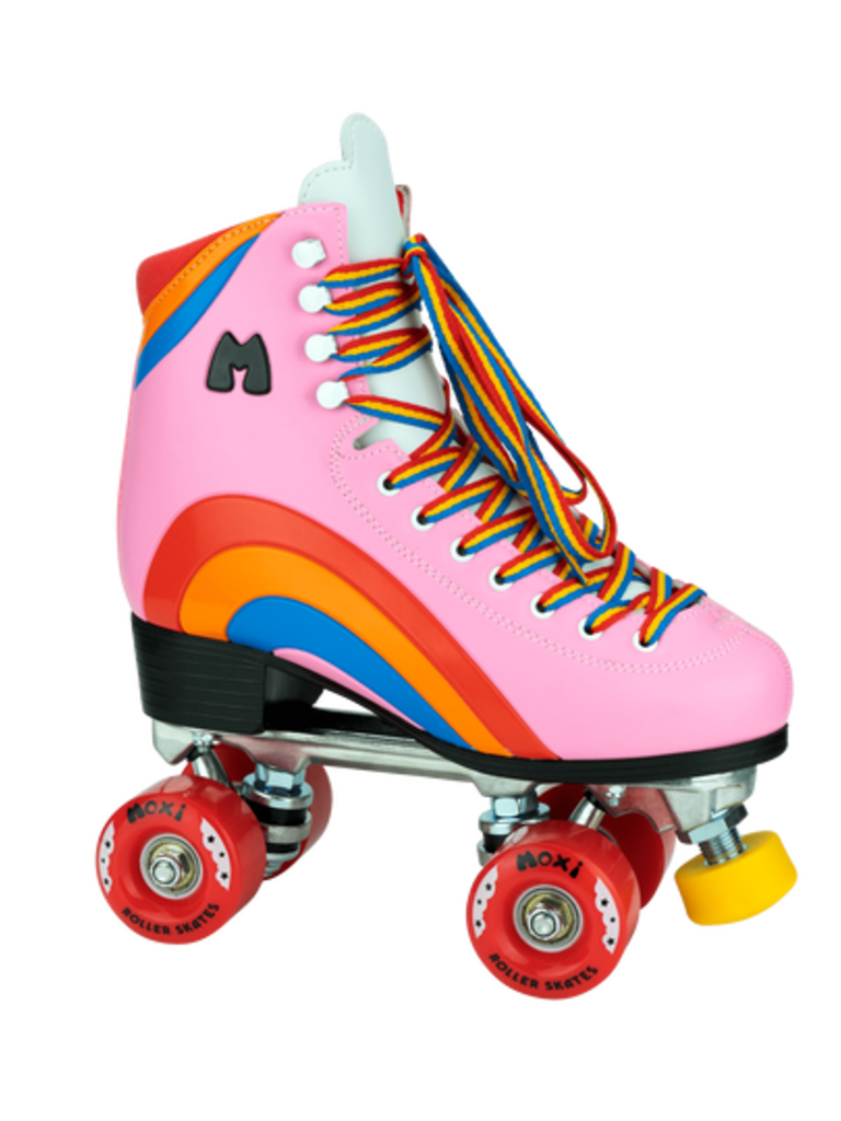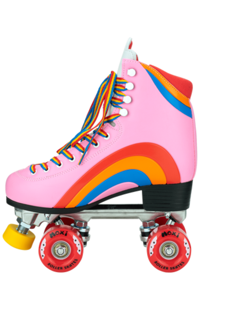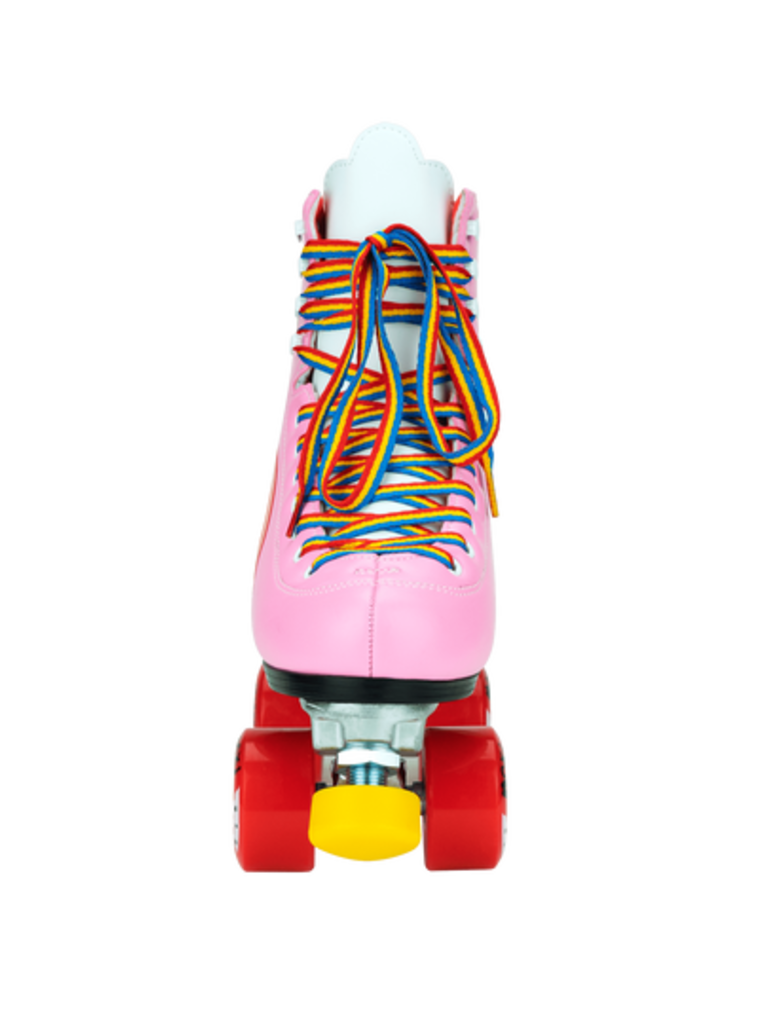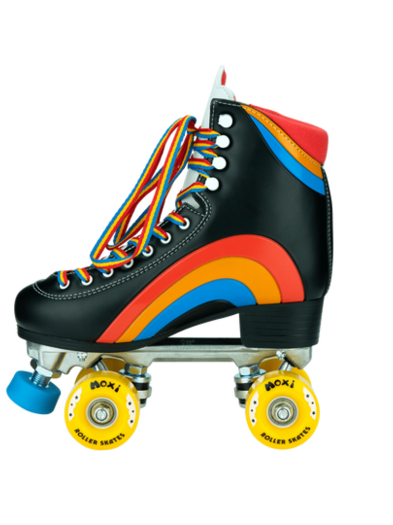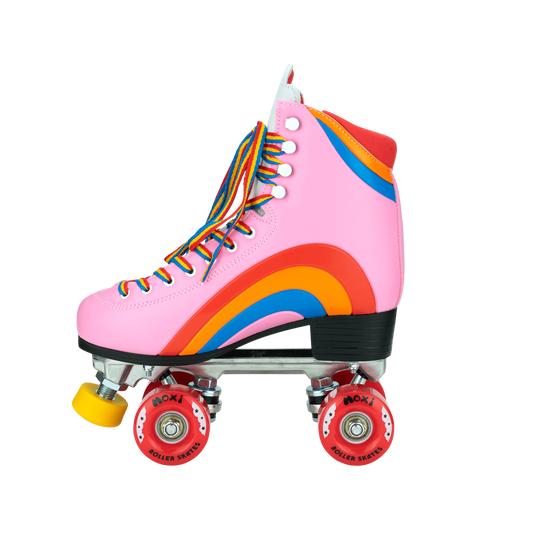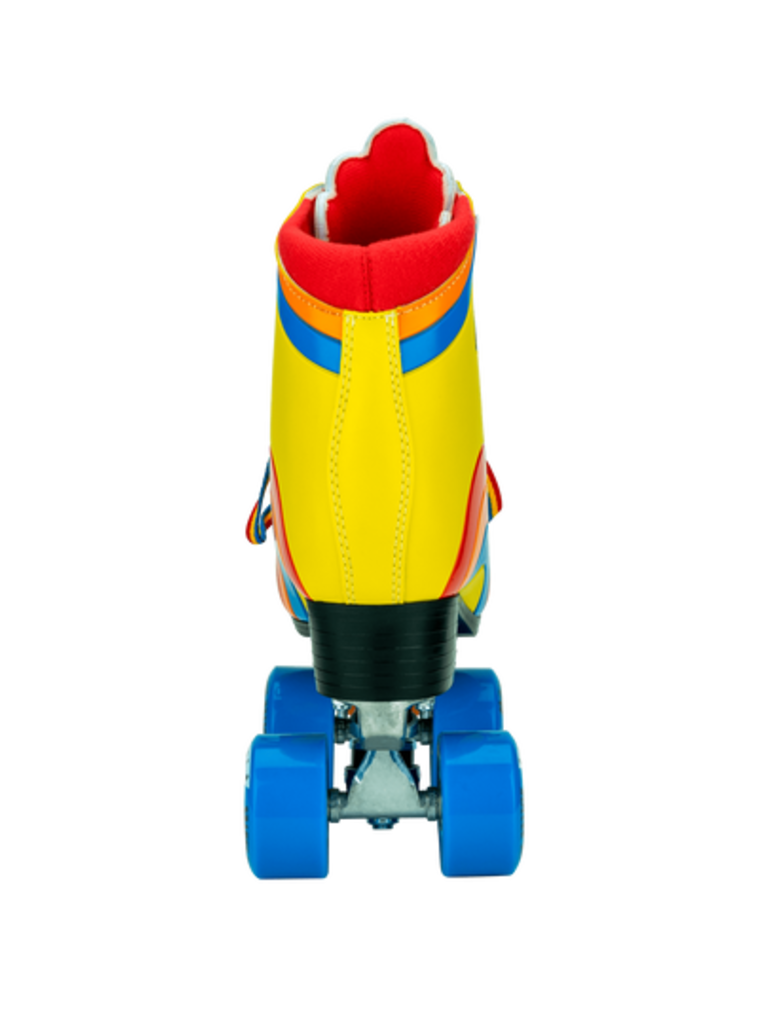 Create an accountThe Rainbow Rider features a reliable boot made of vinyl uppers and a padded, soft lining that is comfortable to the skin for a supportive and care-free stride. Rainbow-themed graphics and a no-maintenance PVC outsole round out the boot, which is attached to a durable die-cast aluminum plate, soft outdoor wheels, ABEC-5 bearings, and an adjustable toe stop to ensure a smooth, cruiser-friendly ride. Brimming with attention to detail and thoughtful touches, the Rainbow Rider is an undeniable value for the beginning or casual outdoor skater. It will leave you feeling like you are gliding along rainbows!