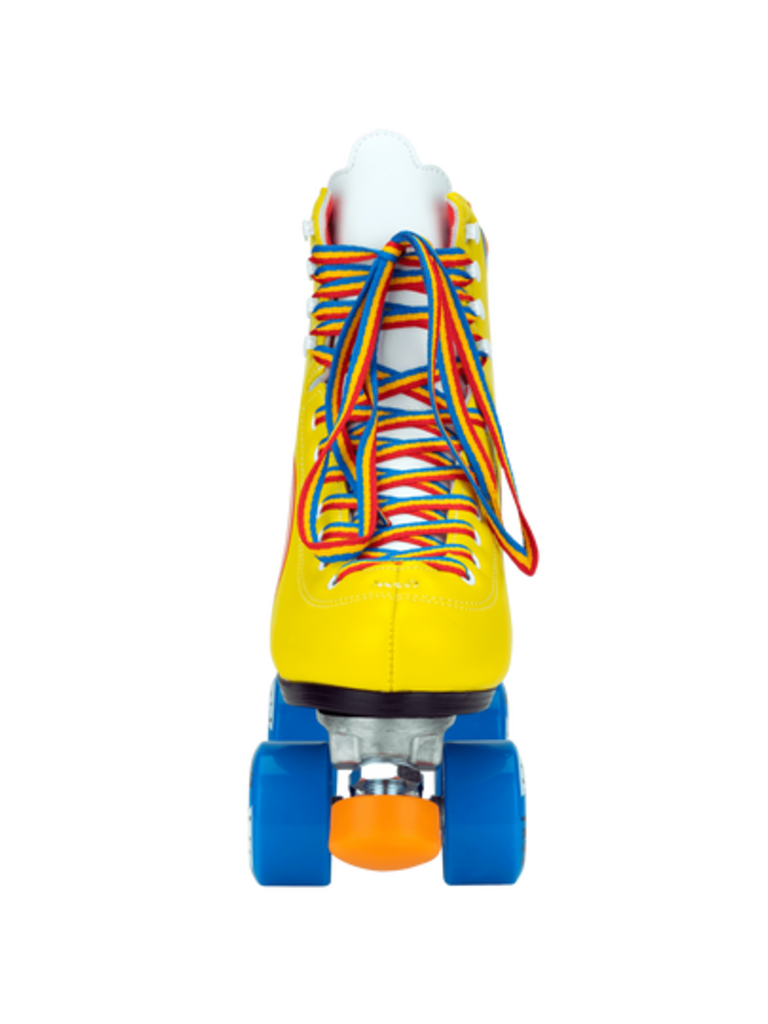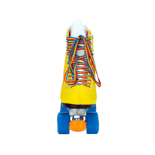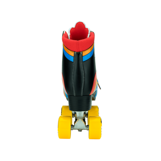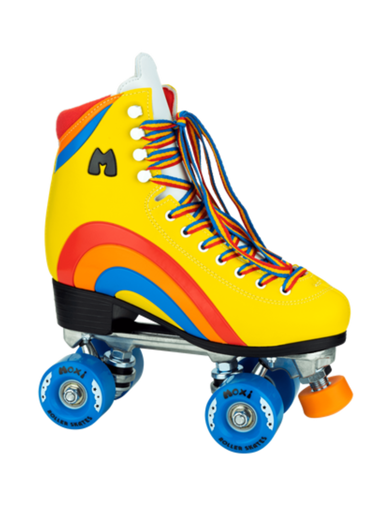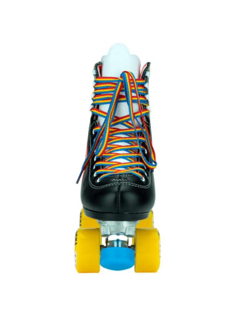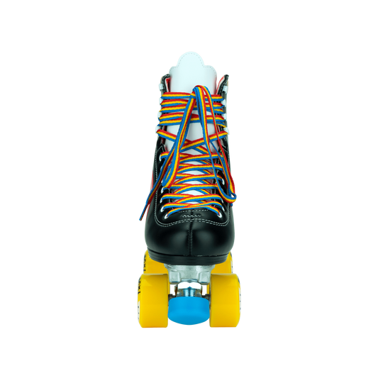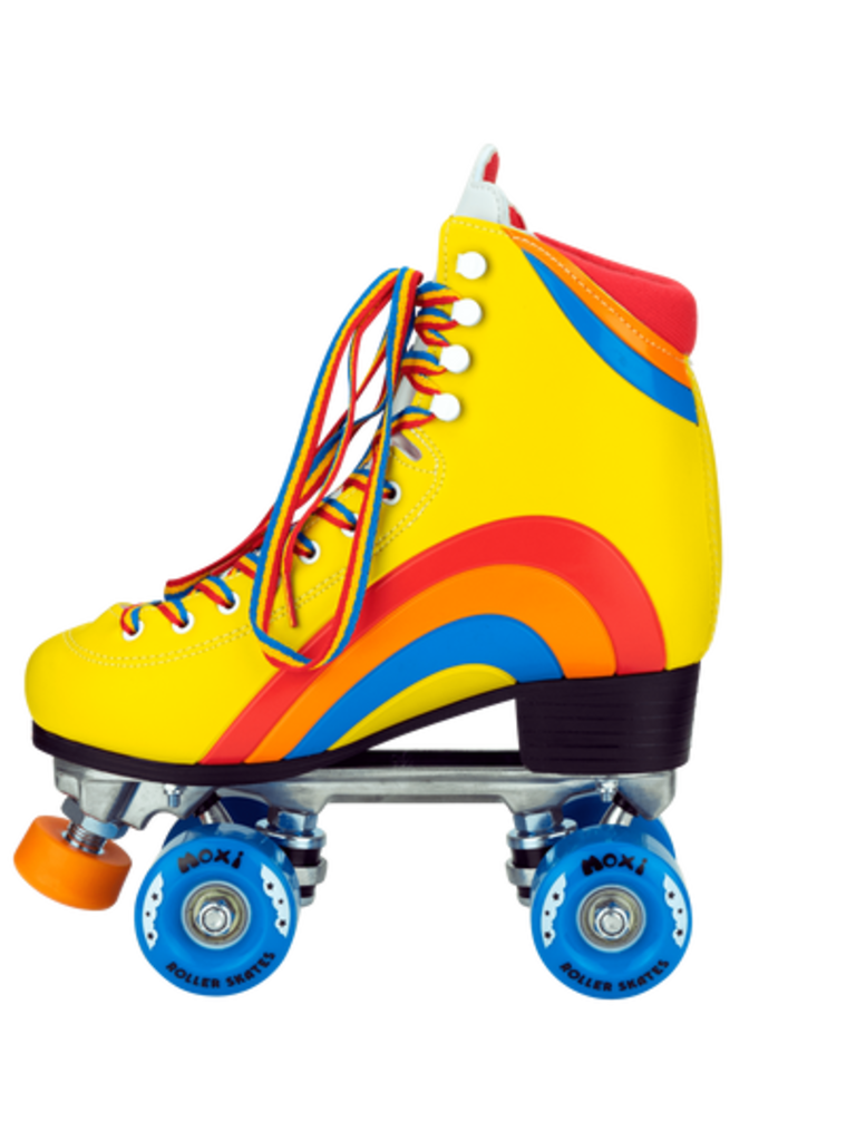 Create an accountThe Rainbow Rider features a reliable boot made of vinyl uppers and a padded, soft lining that is comfortable to the skin for a supportive and care-free stride. Rainbow-themed graphics and a no-maintenance PVC outsole round out the boot, which is attached to a durable die-cast aluminum plate, soft outdoor wheels, ABEC-5 bearings, and an adjustable toe stop to ensure a smooth, cruiser-friendly ride. Brimming with attention to detail and thoughtful touches, the Rainbow Rider is an undeniable value for the beginning or casual outdoor skater. It will leave you feeling like you are gliding along rainbows!
