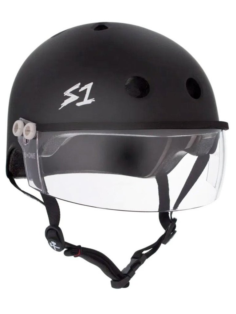 Create an accountA helmet that has a removable visor! The S1 Lifer Visor Helmet is the exact fit of the Standard Lifer Helmet with a modified outer shell that comes equipped with in mold mounting hardware to mount a visor. It is a certified high impact and multiple impact helmet and is ideal for people who play roller derby or anyone who would like the added feature of an attached Visor for eye and face protection from either the sun or contact to the face.