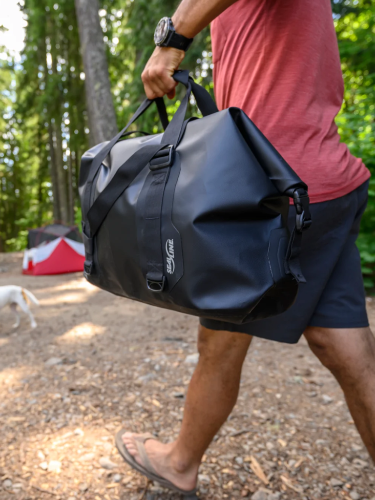 Featuring heavy-duty, PVC-free waterproof materials, RF welded seams, corrosion-resistant hardware, and a tough Ykk AquaSeal® waterproof zipper, this easy access duffel also offers versatile handles that convert to shoulder straps for comfortable carrying.